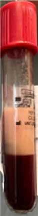 Рис. 1. Кровь пациента № 2, набранная для проведения биохимического анализа на момент госпитализации. Определяется выраженный хилез