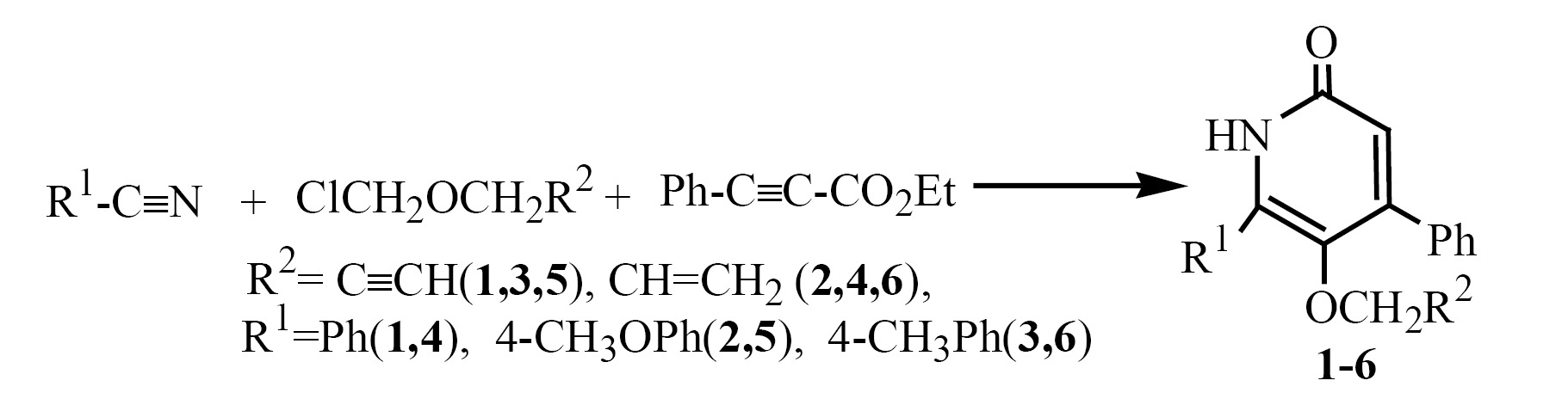 Конденсация арилцианидов с хлорметилпропаргил(аллил)овыми эфирами и этилфенилпропиолатом в присутствии каталитических количеств пиридина приводит к образованию тризамещенных пиридин-2(1H)-онов.