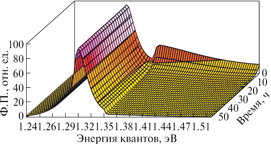 Согласно источникам [1], [3–4] после механического воздействия абразивом эффект очувствления (образование дополнительного высокоэнергетического максимума 1.35–1.36 эВ) сохраняется до двух суток. Однако процесс является сложным, состоящим из двух экспонент, и описывается следующим выражением