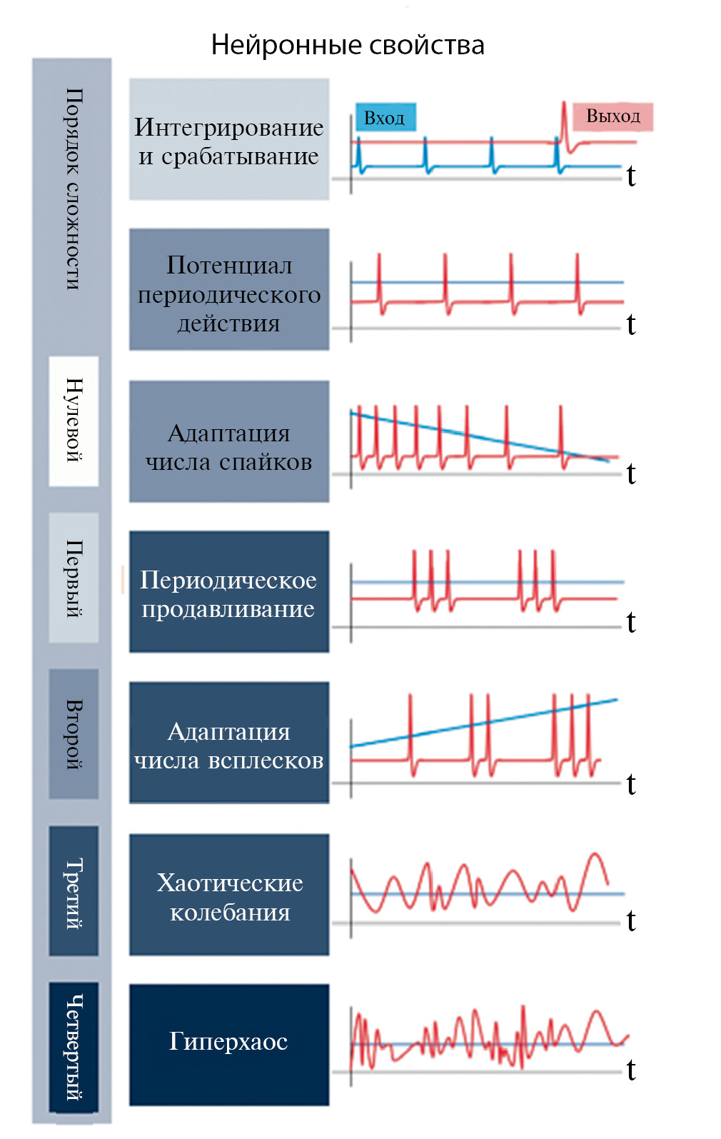 Рис. 2. Примеры нейронного поведения, требующие различных порядков сложности.