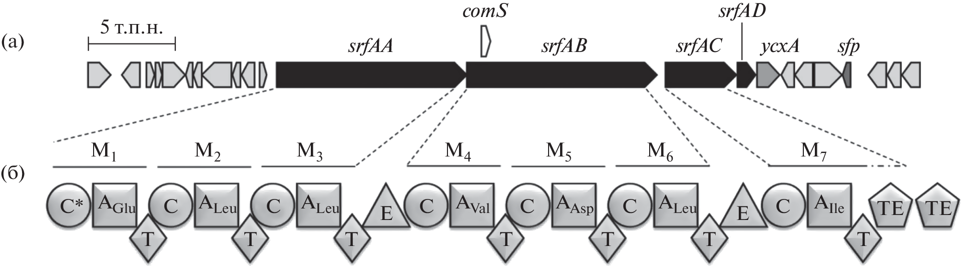 - Marahiel M.A., Nakano M.M., Zuber P. // Mol. Microbiol. 1993. V. 7. № 5. P. 631–636. https://doi.org/10.1111/j.1365-2958.1993.tb01154.x