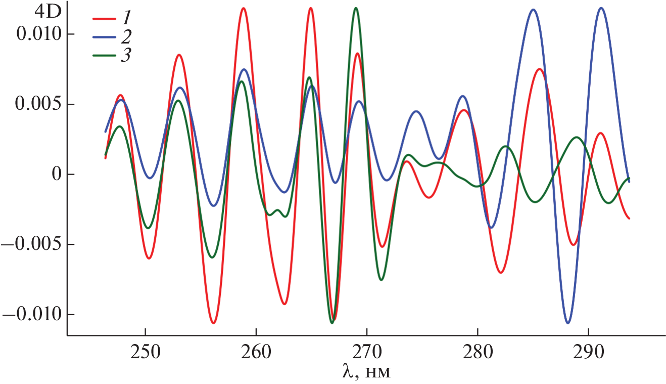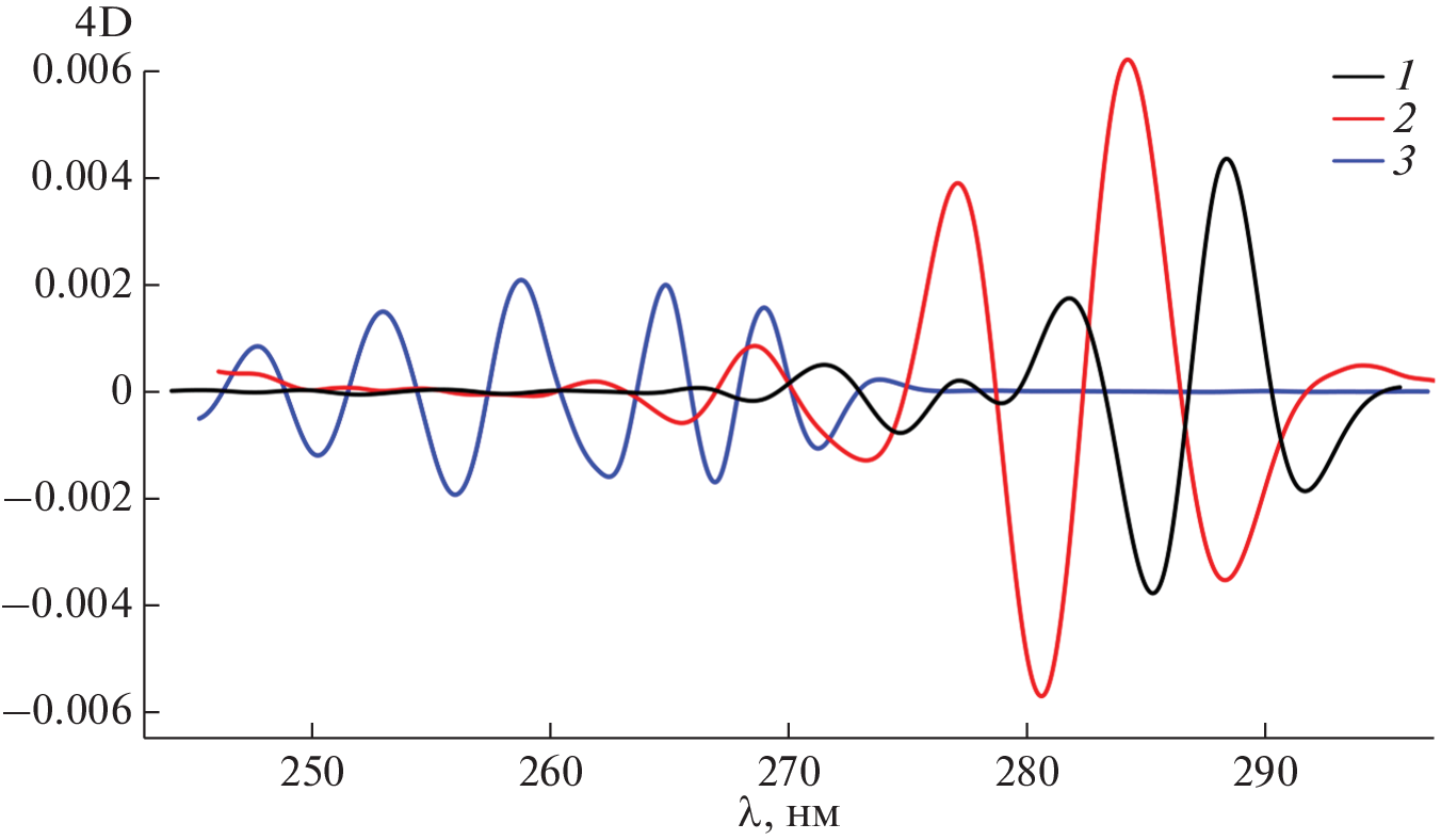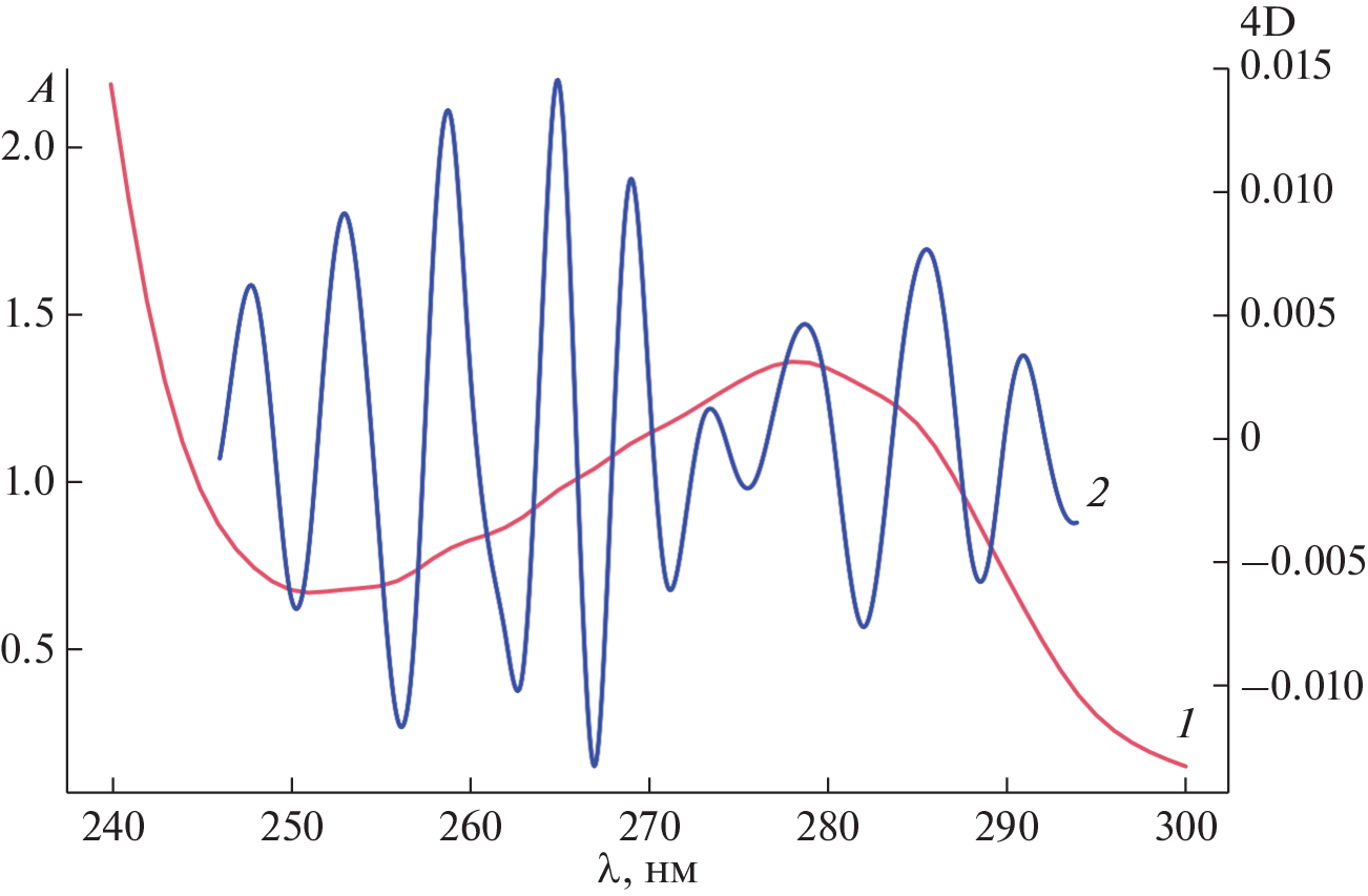 Bovine serum albumin and two oxygen transport proteins, hemocyanin from the snail Achatina fulica and bovine hemoglobin, were used to define what regimens of derivative UV-spectrophotometry are most appropriate for using it as an express technique for nondestructive comparative analysis of native proteins preparations. It was found that the fourth derivatives of proteins absorption spectra make it possible to detect the individual bands of aromatic amino acids in a way optimal for solving certain practical problems. An algorithm for calculating the fourth derivatives was selected experimentally. To verify the approach, the fourth derivatives of the native proteins spectra were reconstructed by combining those of individual aromatic amino acids spectra in the range of 240–300 nm. To demonstrate the individual differences between proteins, it is proposed to use the correlation coefficients of the fourth derivatives of spectra in the range of 240–300 nm or in the wavelength range of tyrosine and tryptophan. Although this approach does not provide for estimating the exact contents of individual aromatic amino acids in proteins, it allows comparing different proteins between each other. The proposed approach makes it possible to obtain an individual spectral “portrait” of a protein, which distinguishes it from other proteins and is useful as a reference for further experimental work with it.