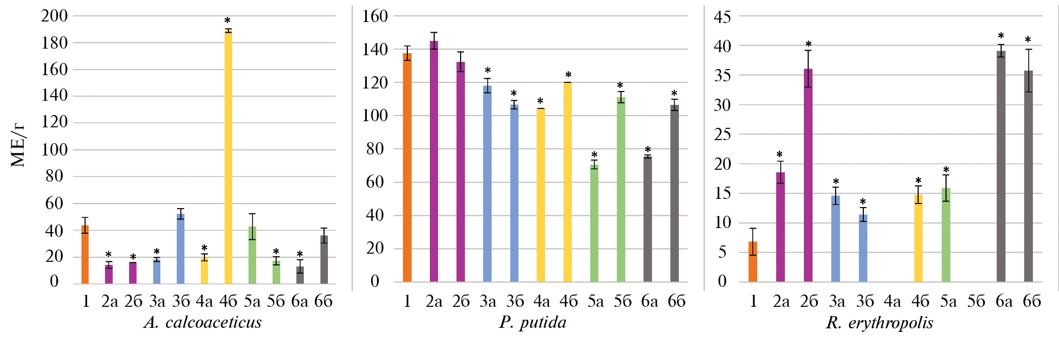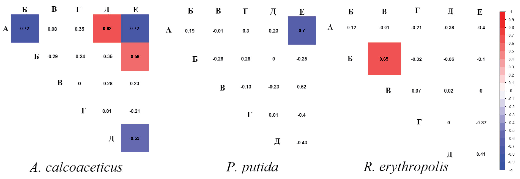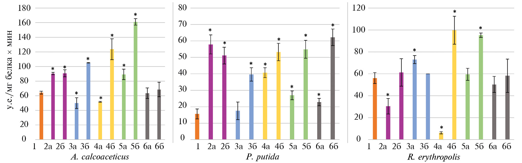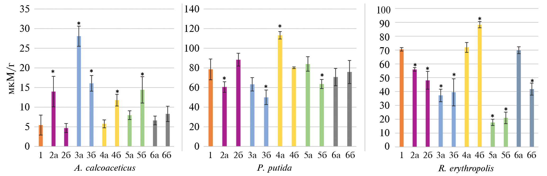 A. сalcoaceticus | P. putida | R. erythropolis | |