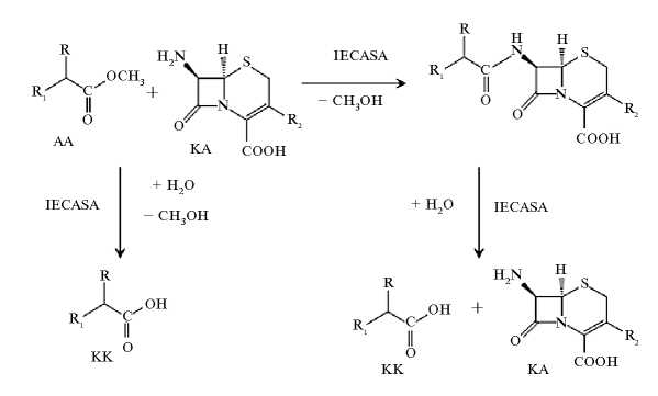 Рис. 1. Схема кинетически-контролируемого синтеза цефалоспоринов.