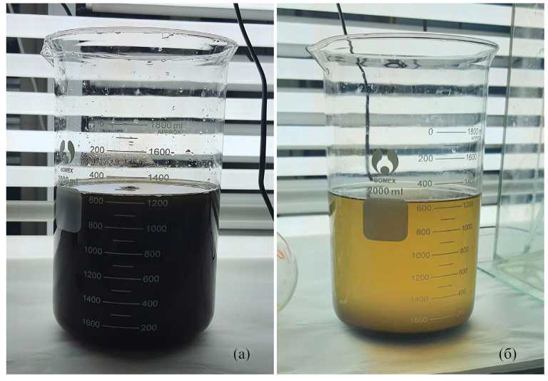 Культуры имели светло-коричневый цвет и оседали на дно (рис. 6). Свойство культуры оседать на дно имеет большое значение для биотехнологии, поскольку облегчает сбор биомассы для дальнейшей экстракции полезных веществ. Стоит отметить, что при этом не возникало проблем с перемешиванием в процессе барботирования, поскольку вид мелкоклеточный, колониальный [19].