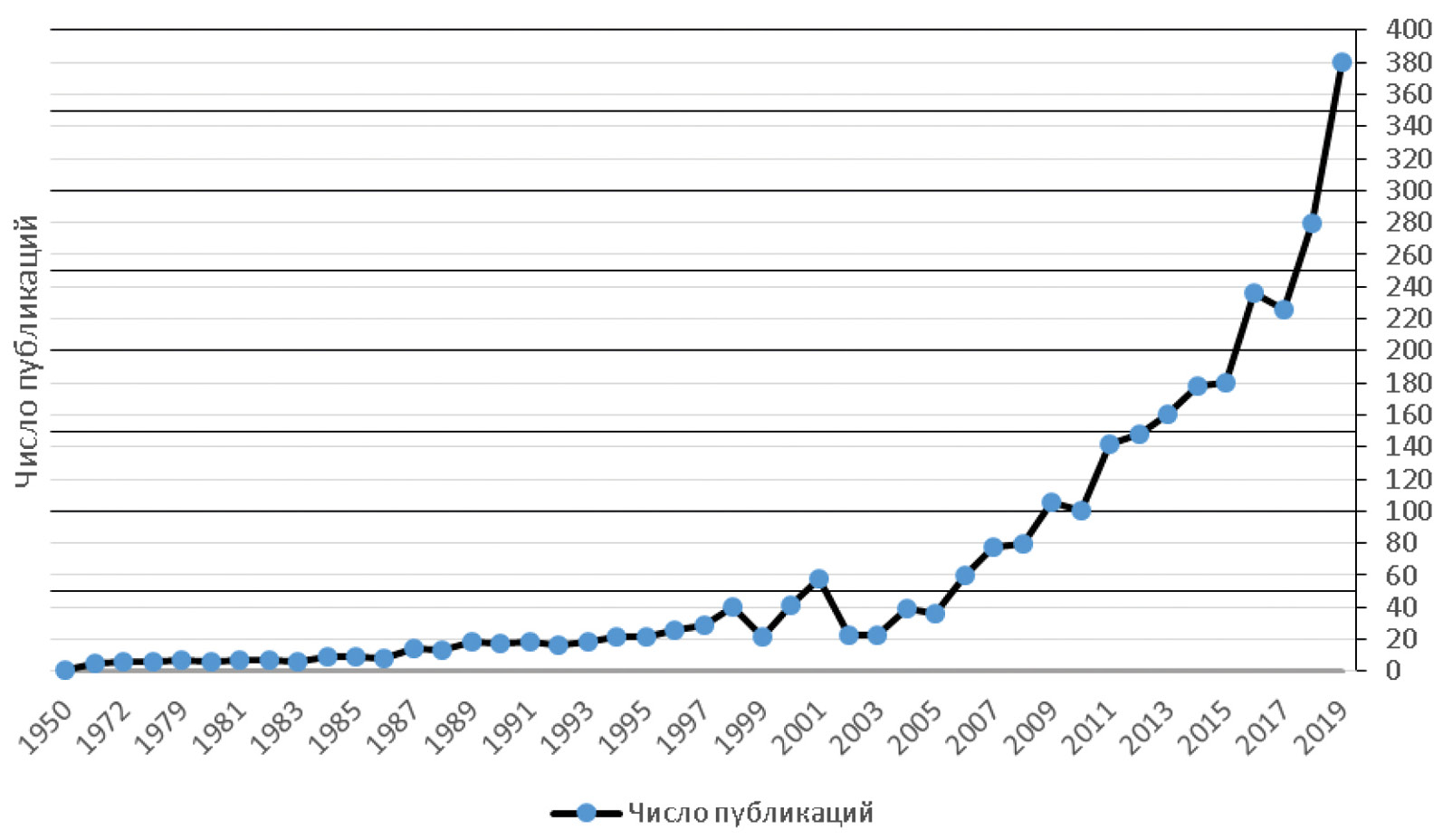 Исторический период изучения женского предпринимательства оценивают в литературе по-разному. Одни авторы датируют первую публикацию, посвященную этому феномену 1950 г. [Cardella et al. 2020, 4], другие – 1976 г. [Gomes et al. 2014, 322]. Однако, вплоть до начала нынешнего тысячелетия данная тема не привлекала к себе особого внимания исследователей, о чем свидетельствует крайне малое количество публикаций. Подлинный интерес к женскому предпринимательству зарождается только после 2006 г., но отличается экспоненциальным ростом количества публикаций (рис. 1). Переломным моментом следует считать середину 1970-х гг. в. Во-первых, с указанного периода начинает неуклонно увеличиваться количество публикаций, посвященных участию женщин в предпринимательской деятельности. Во-вторых, возникает серьезная причина для стремительного роста исследований – программа администрации президента США Дж. Картера по поддержке женщин предпринимателей.