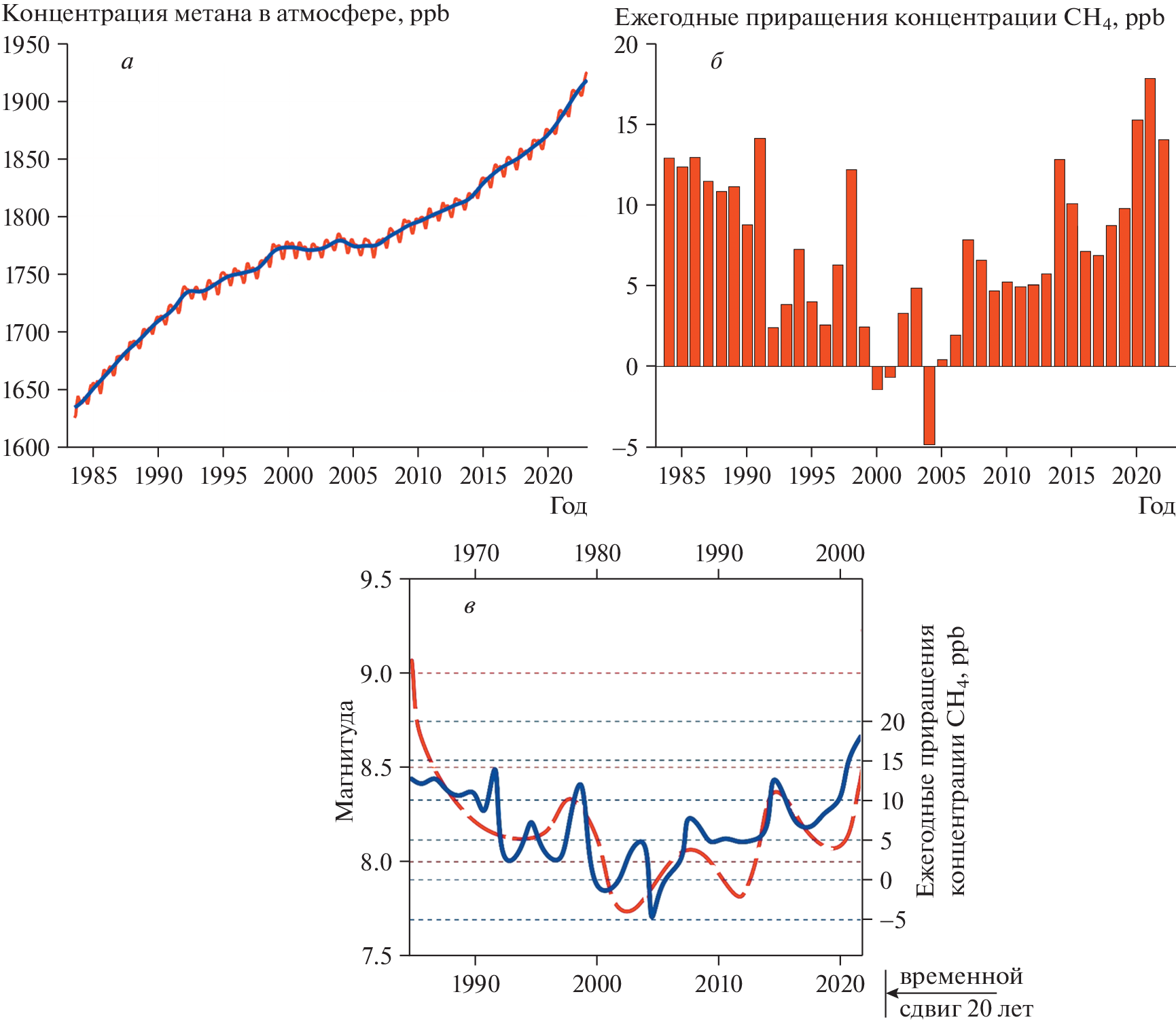 33. Dlugokencky E.J., Steele L.P., Lang P.M., Masarie K.A. The growth rate and distribution of atmospheric methane // J. Geophys. Res. 1994. V. 99. P. 17021–17043. https://doi.org/10.1029/94JD01245