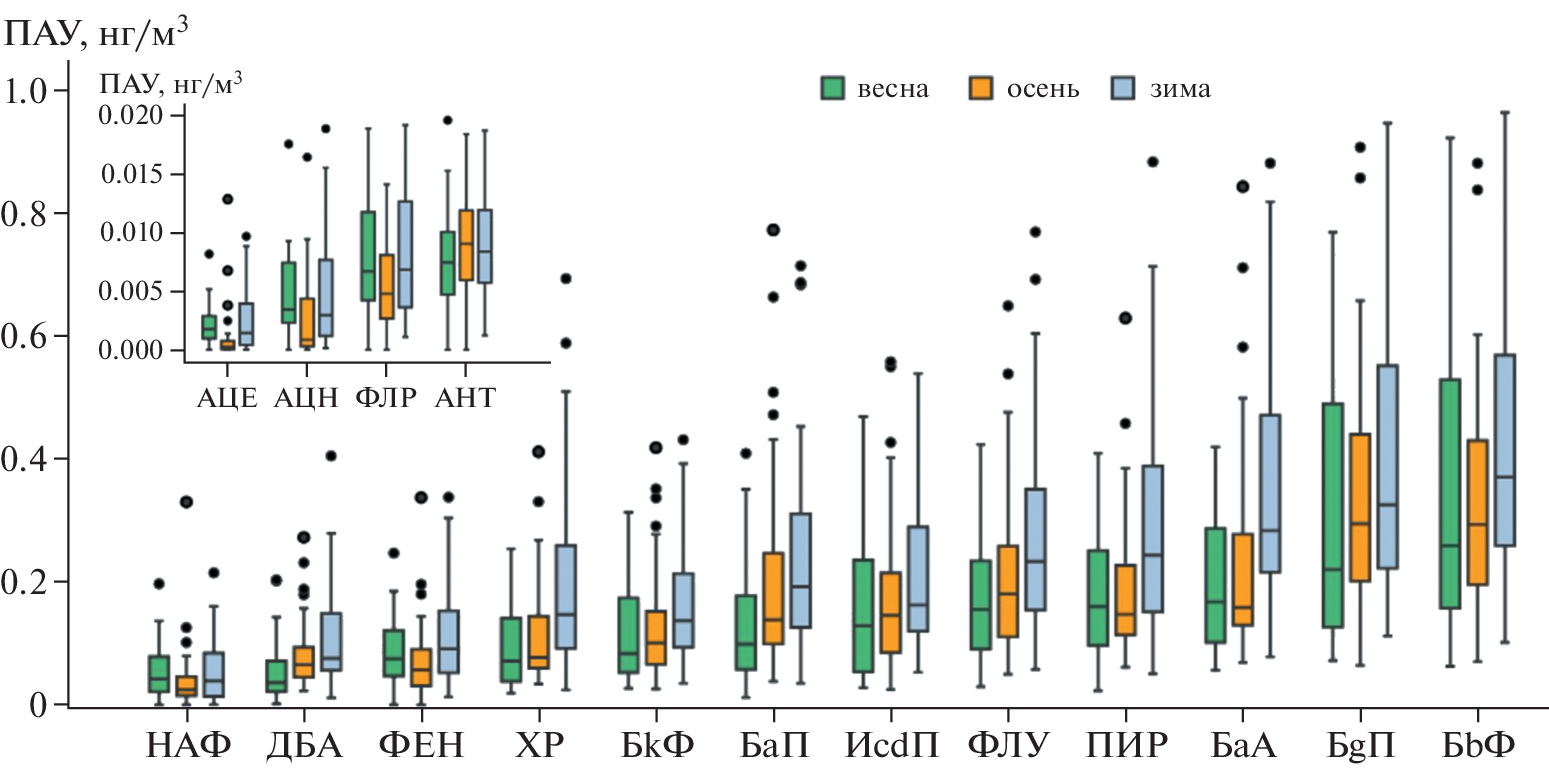 - Wang R., Huang Q., Cai J., Wang J. Seasonal variations of atmospheric polycyclic aromatic hydrocarbons (PAHs) surrounding Chaohu Lake, China: Source, partitioning behavior, and lung cancer risk // Atmospheric Pollution Research. 2021. № 5. 101056.