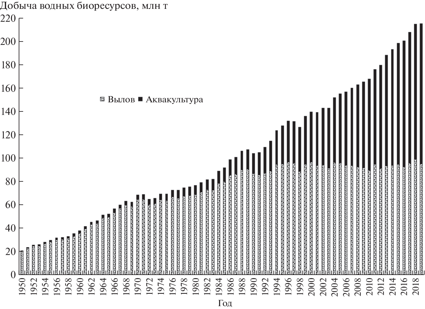 This article considers global trends in the use of aquatic biological resources in 1950–2020. The number and biomass of most hydrobiont species, which determine the indicators of modern fisheries, are within the historical limits of their natural interannual and long-term dynamics. According to the authors, the resource potential of the World Ocean makes it possible to count on an increase in the production of aquatic biological resources. The increased attention to aquaculture is due not to the state of the stocks of traditional fisheries, but to the economic advantages of commercial cultivation of hydrobionts compared to fishing. First of all, this concerns the areas of the most massive accumulation of the population of the Earth. The experience of China and the countries of Southeast Asia should be taken exclusively in the context of the political, economic, demographic, and other conditions specific to the region. Copying such experience in Russia is hardly possible. In the foreseeable future, fishing will apparently remain a priority for our country, which has significant scientific achievements and practical developments in the field of fish farming.