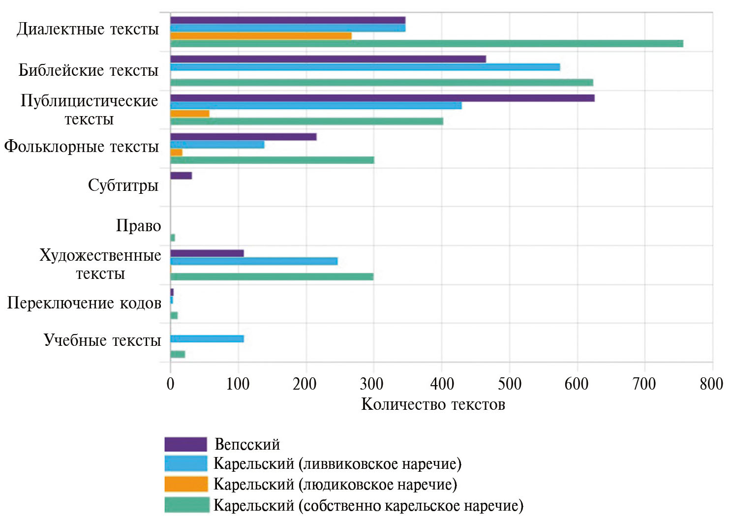 Рис. 2. Статистика текстов по подкорпусам ВепКара