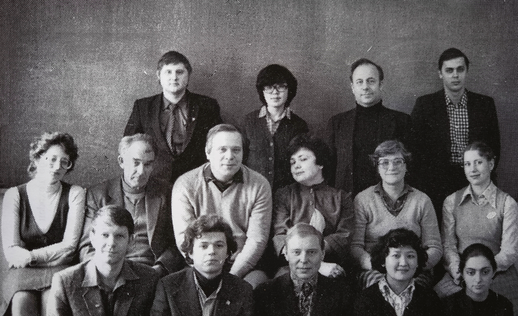 Сотрудники лаборатории химической модификации полимеров химического факультета МГУ им. М.В. Ломоносова (Н.А. Платэ – в последнем ряду, второй справа). 1984 г.