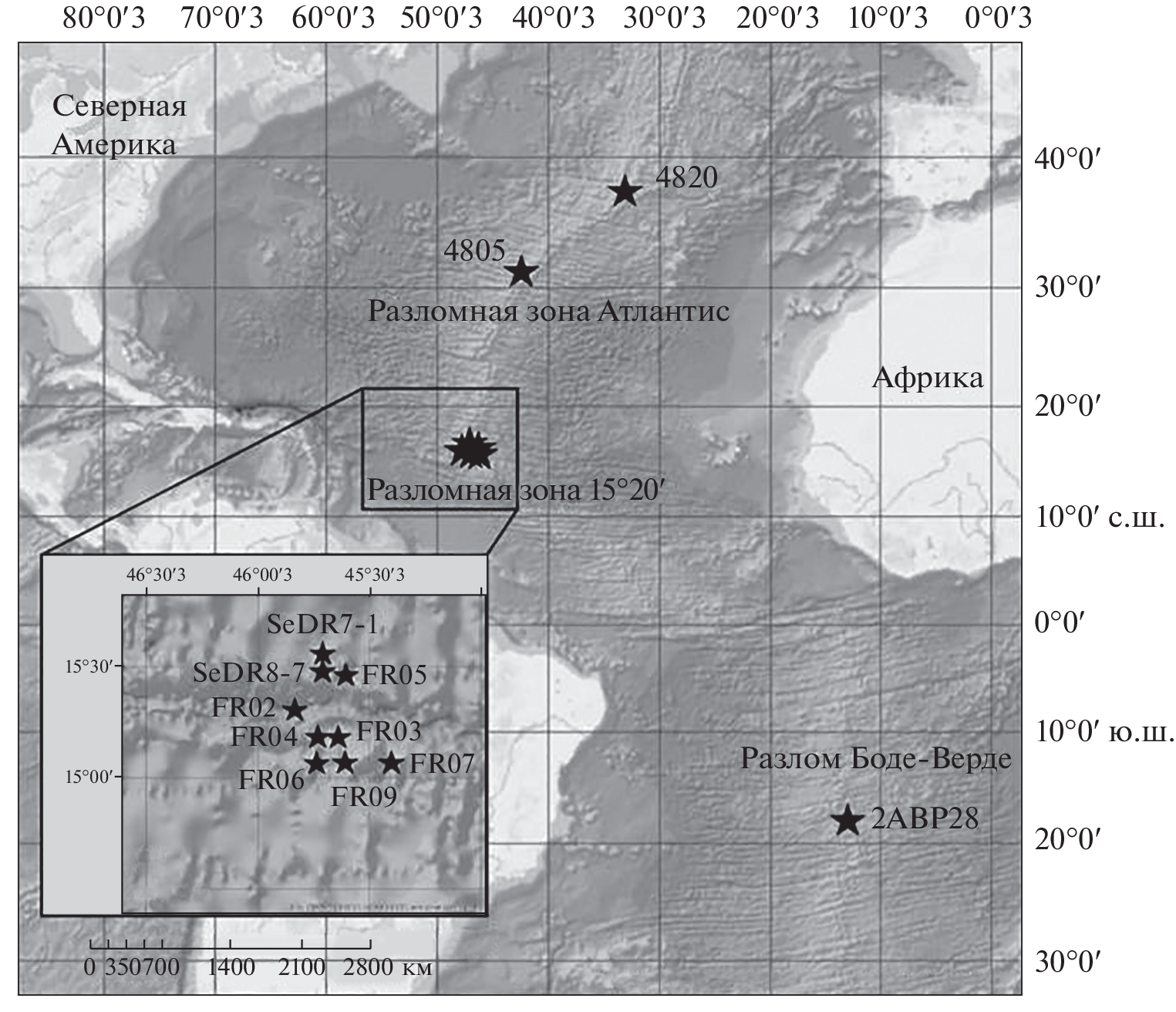- Da Costa I.R., Barriga F.J.A.S., Taylor R.N. Late seafloor carbonate precipitation in serpentinites from the Rainbow and Saldanha sites (Mid-Atlantic Ridge) // Eur. J. Mineral. 2008. V. 20. P. 173–181.