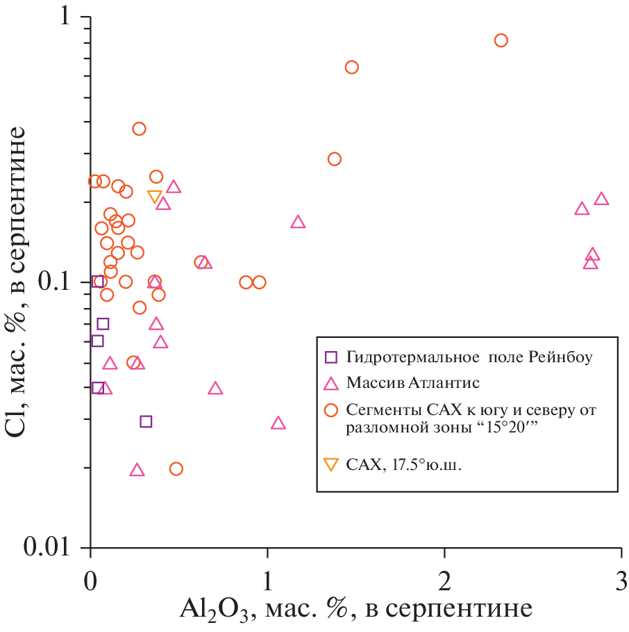 - Jöns N., Bach W., Klein F. Magmatic influence on reaction paths and element transport during serpentinization // Chemical Geol. 2010. V. 274. P. 196–211.