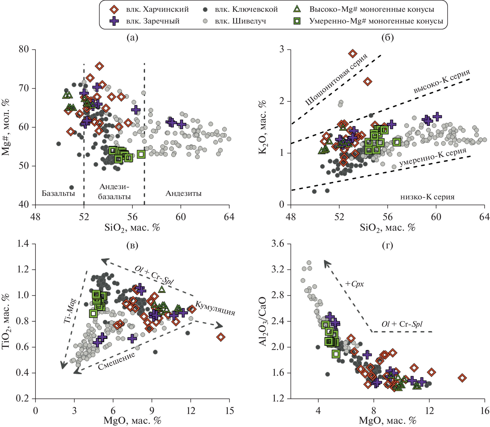 - Bryant J.A., Yogodzinski G.M., Churikova T.G. High-Mg# andesitic lavas of the Shisheisky Complex, Northern Kamchatka: implications for primitive calc-alkaline magmatism // Contrib. Mineral. Petrol. 2011. V. 161. Iss. 5. P. 791–810.