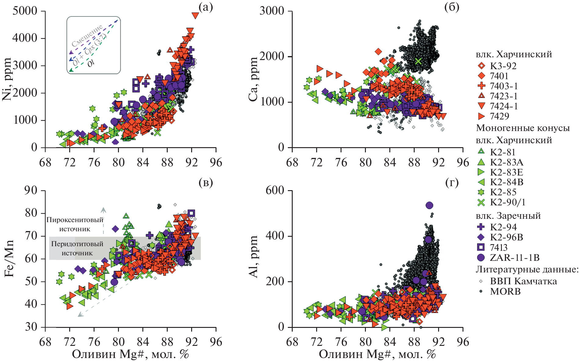 - Gordeychik B., Churikova T., Shea T. et al. Fo and Ni relations in olivine differentiate between crystallization and diffusion trends // J. Petrol. 2020. V. 61. Iss. 9.https://doi.org/10.1093/petrology/egaa083