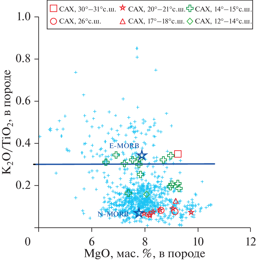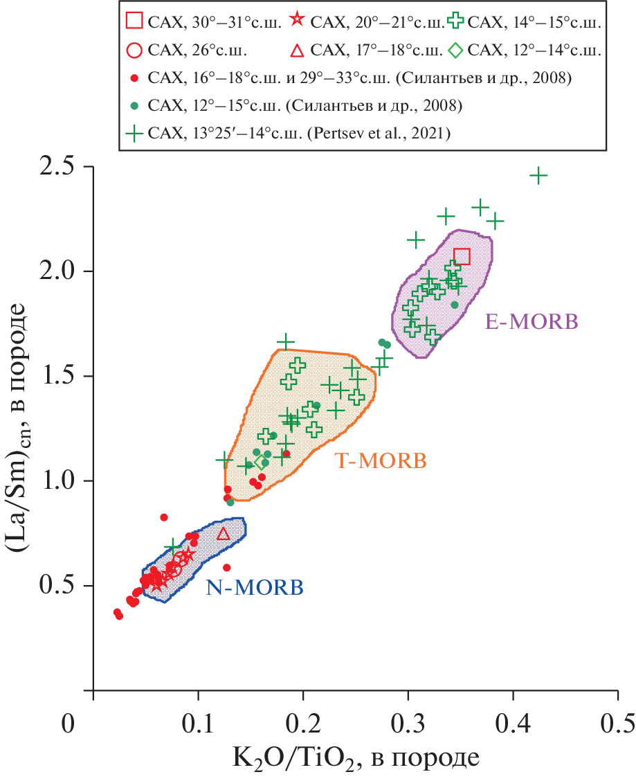 - Yang S., Humayun M., Salters V.J.M. Elemental systematics in MORB glasses from the Mid-Atlantic Ridge // Geochem. Geophys. Geosyst. 2018. V. 19. P. 4236–4259.