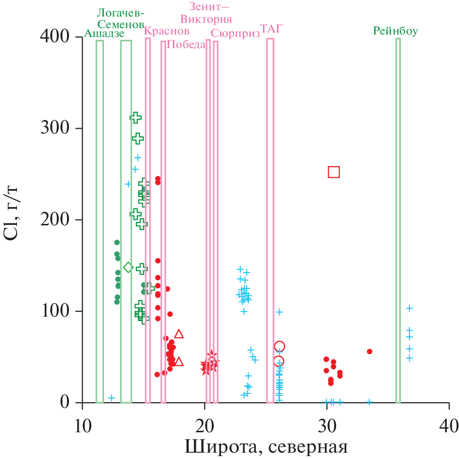 - Broadley M.W., Burgess R., Kumagai H. et al. Halogen variations through the quenched margin of a MORB lava: evidence for direct assimilation of seawater during eruption // Geochem. Geophys. Geosyst. 2017. V. 18. P. 2413–2428.