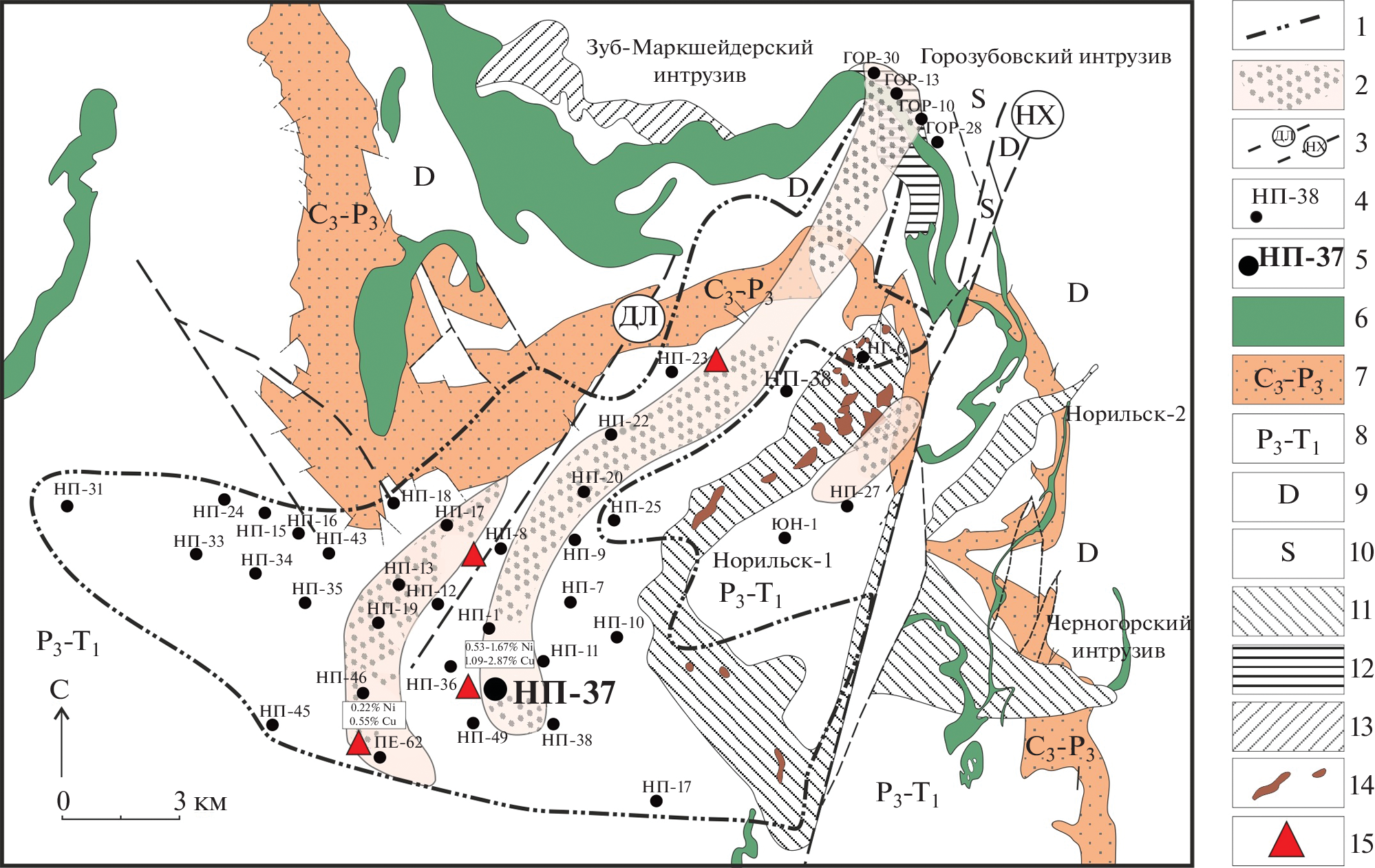 - Krivolutskaya N., Mikhailov V., Gongalsky B. et al. The permian-triassic riftogen rocks in the Norilsk Area (NW Siberian Province): geochemistry and their possible link with PGE-Cu-Ni mineralization // Minerals. 2022. V. 12. P. 1203.