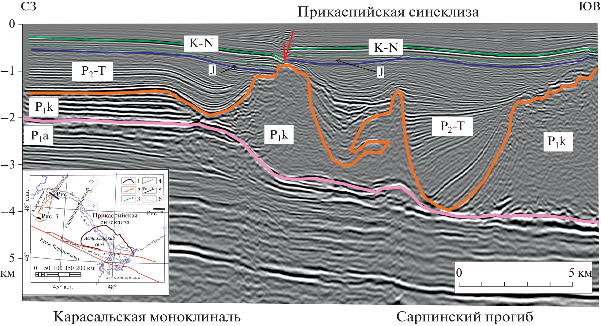 The paper deals with the composition and stratigraphy of the evaporite formation in the salt-producing province of the Caspian region. Based on seismostratigraphic approach, the correlation of geological sections in the lateral areas of the salt-producing province with the halokinetically deformed sections in the central areas of the Preсaspian depression is proposed. As a result of the research, a new local stratigraphic scheme of the Permian evaporite formation of the Central subprovince is proposed and the principles of its construction using the results of the seismostratigraphic analysis of the Asselian-Tatarian seismogeological substage and the accepted serial legends of three groups of sheets of geological maps (scale 1 : 1000 000; Scyphian (South-European), Central-European, and Uralian maps) are outlined. The results obtained significantly clarify the known schemes of the oil and geological zoning of the Caspian oil and gas province and contribute to the development of the resources of the deep (subsalt) horizons of its sedimentary cover.