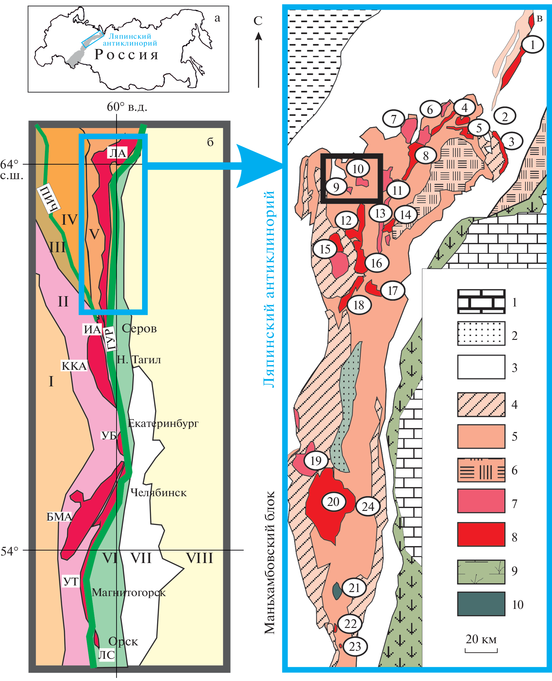- Udoratina O.V., Kulikova K.V., Shuyskiy A.S., Soboleva A.A., Andreichev V.L., Golubeva I.I., Kapitanova V.A. Granitoid magmatism in the north of the Urals: U–Pb age, evolution, sources // Geodynam. Tectonophys. 2021. V. 12. № 2. P. 287–309.