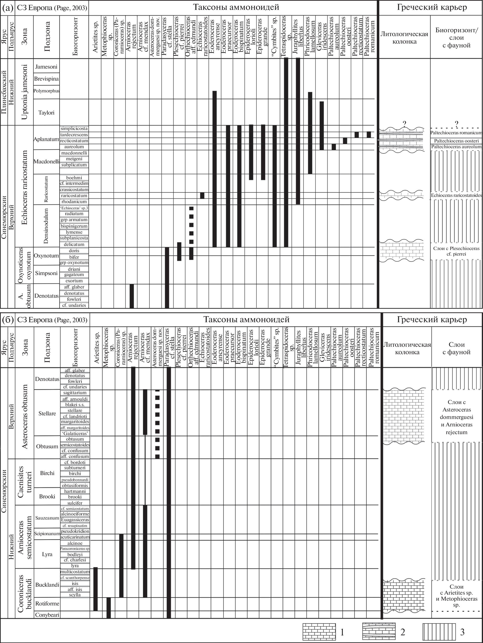 - Hesselbo S.P., Meister Ch., Gröcke D.R. A potential global stratotype for the Sinemurian–Pliensbachian boundary (Lower Jurassic), Robin Hood’s Bay, UK: ammonite faunas and isotope stratigraphy // Geol. Mag. 2000. V. 137. № 6. P. 601–607.