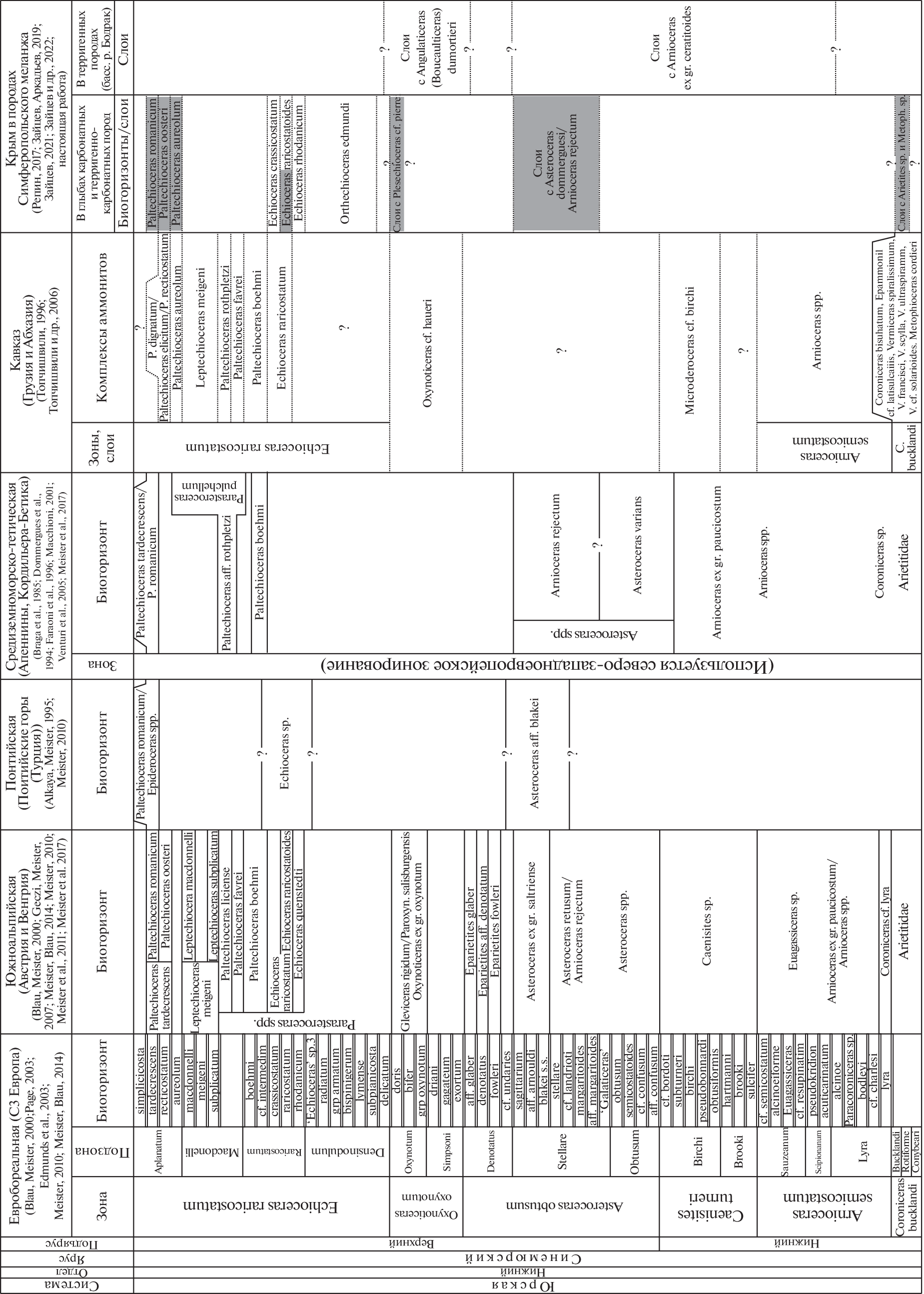 - Meister Ch. Worldwide ammonite correlation at the Pliensbachian Stage and Substage boundaries (Lower Jurassic) // Stratigraphy. 2010. V. 7. № 1. P. 83–101.