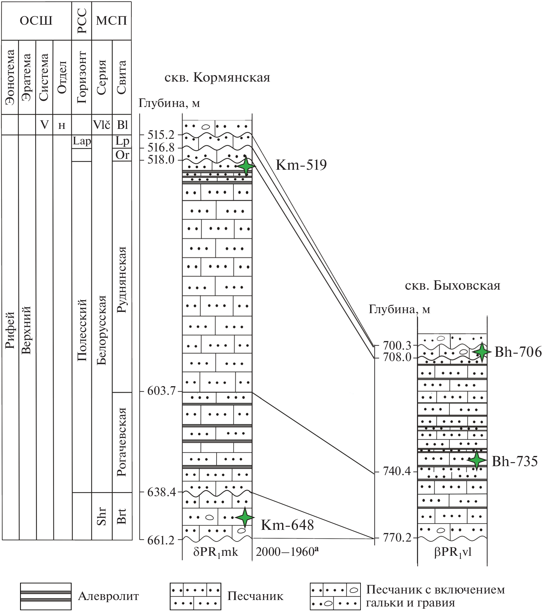 - Paszkowski M., Budzyń B., Mazur St., Slama J., Shumlyanzkyy L., Środoń J., Dhuime B., Kędzior A., Liivamägi S., Pisarzowska A. Detrital zircon U–Pb and Hf constraints on provenance and timing of deposition of the Mesoproterozoic to Cambrian sedimentary cover of the East European Craton, Belarus // Precambrian Res. 2019. V. 331. P. 1–19.