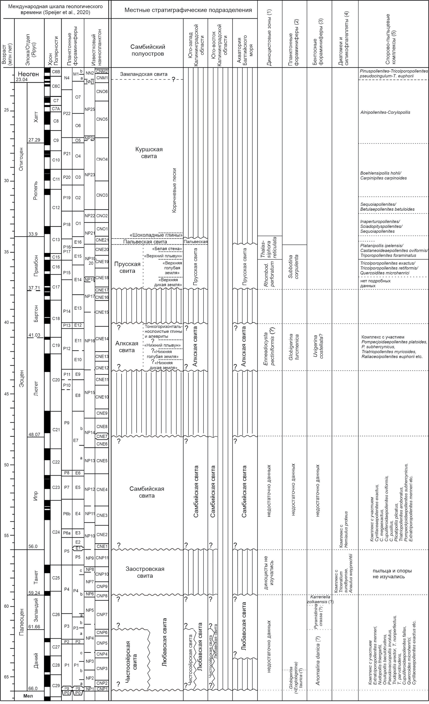 Рис. 5. Актуализированная региональная стратиграфическая схема палеогена Калининградской области.