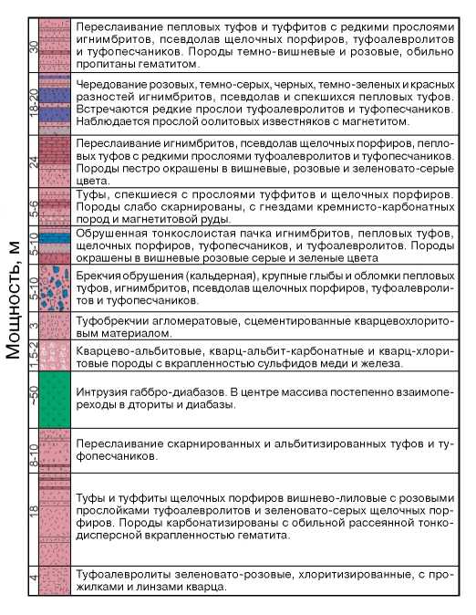 Рис. 3. Сводный разрез вулканогенно-осадочных отложений междуречья Мара–Каменка (по Бессолицын и др., 1969).