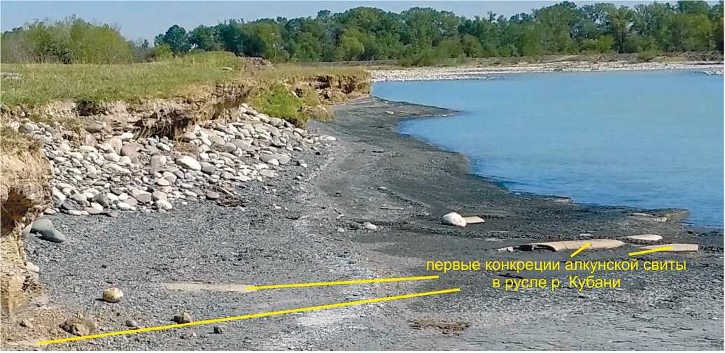 Рис. 4. Обнажение алкунской свиты в осушенной части русла р. Кубань (фото С.В. Попова).