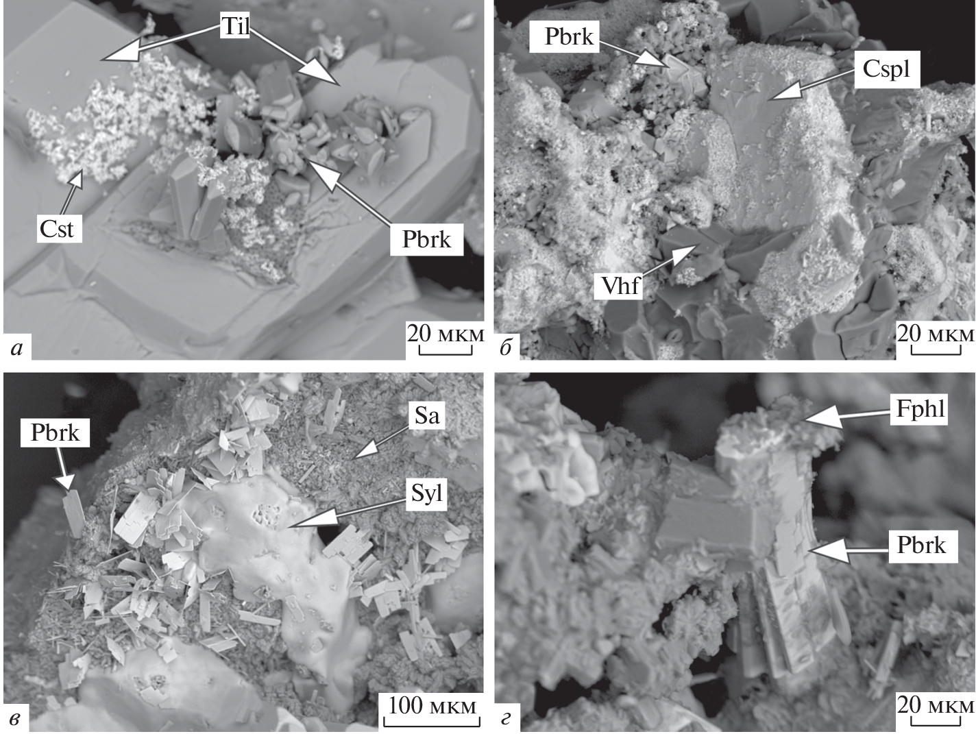- Сандалов Ф.Д., Пеков И.В., Кошлякова Н.Н., Япаскурт В.О., Агаханов А.А., Сидоров Е.Г., Бритвин С.Н. Богатый халькофильными элементами (Sb, Sn, Te) рутил и высокотитанистые разновидности трипугиита и касситерита из возгонов активных фумарол вулкана Толбачик (Камчатка, Россия) // ЗВМО. 2020. № 2. С. 22–41.