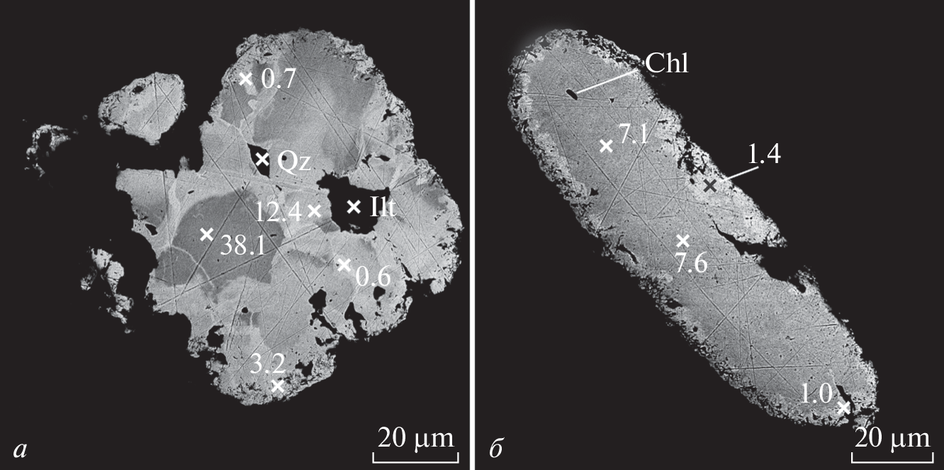 The results of a comprehensive study of the morphology, composition and the internal structure of fine autigenic gold, first discovered in bedrock on the area of the Kyvvozhskoye goldfield, are presented. It has complex specific rounded-lumpy, lumpy-branched aggregate forms and a smooth growth surface without traces of mechanical wearing. X-ray studies (Debye-Scherrer method) show that reflexes in the form of dashed rings are characteristic of debyeograms of this native gold, which, according to the authors, indicates the absence of exogenous deformations of it. The internal structure of all the studied gold pieces is characterized by a relatively homogeneous inner area and a thin (~1 µm) contrasting enriched with silver low-grade rim. All the particles of the studied native gold have approximately the same average fineness (899–918‰). As a mechanism for the formation of the found autigenic gold, its crystallization is assumed by filling of the free pore space of the host sandstones. Its presence in Riphean rocks is considered as an indicator of the primary dispersion halos and is a direct search sign of the development of potentially productive gold mineralization in this part of the Middle Timan.