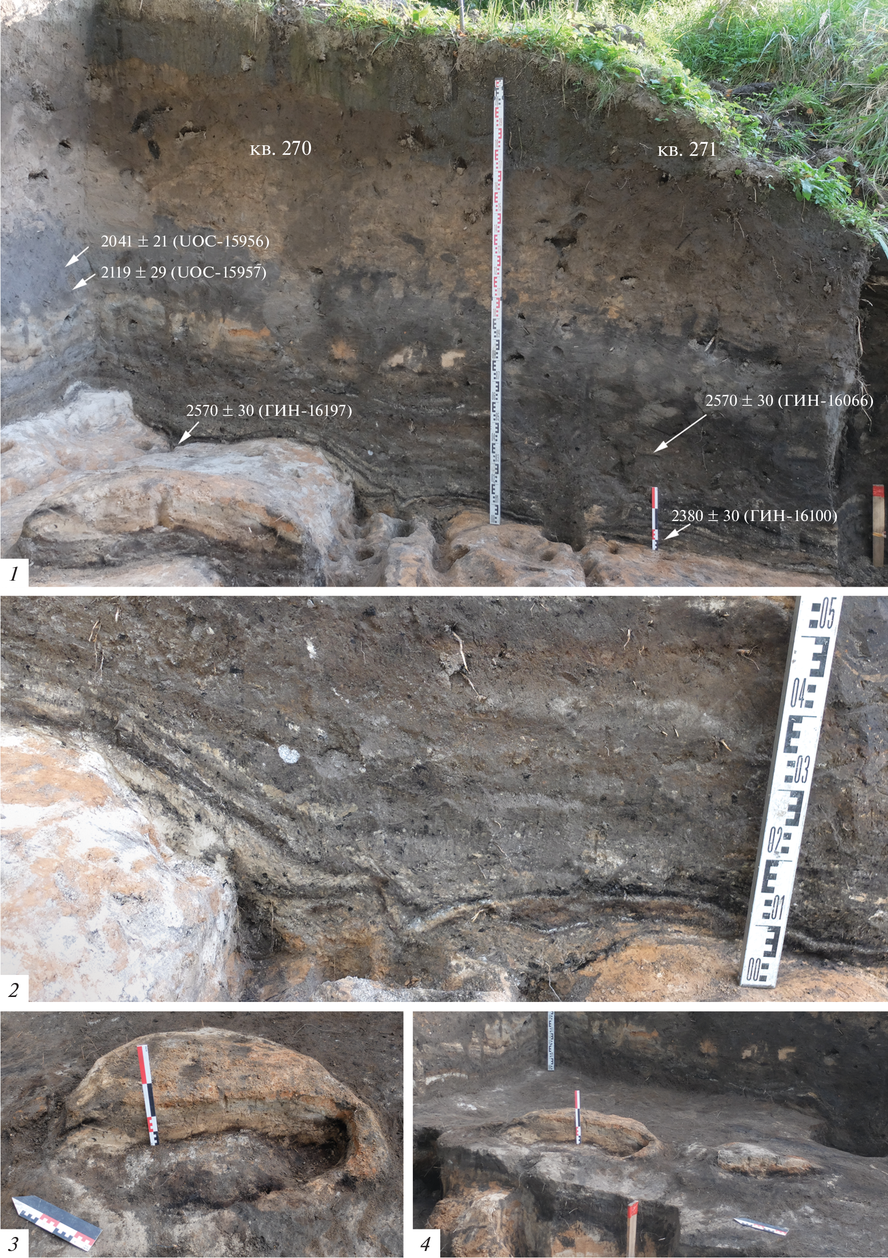 The article presents new results of studying the reference fortified settlement of Demidovka in Smolensk Region, Russian Federation, the lower date of which is the 7th (8th) century BC, the upper one is 6th century AD. The authors analyze museum collections (Smolensk) of the 1960s excavations that have not been covered in the publications, drawing records from the archive of the Institute of Archaeology RAS, data from palaeosoil and geochemical studies. As part of the study, additional test excavations were conducted, which made it possible to clarify the stratigraphy of the site and refine the plan of the “big house” – the residence of a noble family member (nobile) of the 5th century AD. A significant series of radiocarbon dates has been obtained, and an archaeozoological collection has been assembled that characterizes the diet of the settlement dwellers.