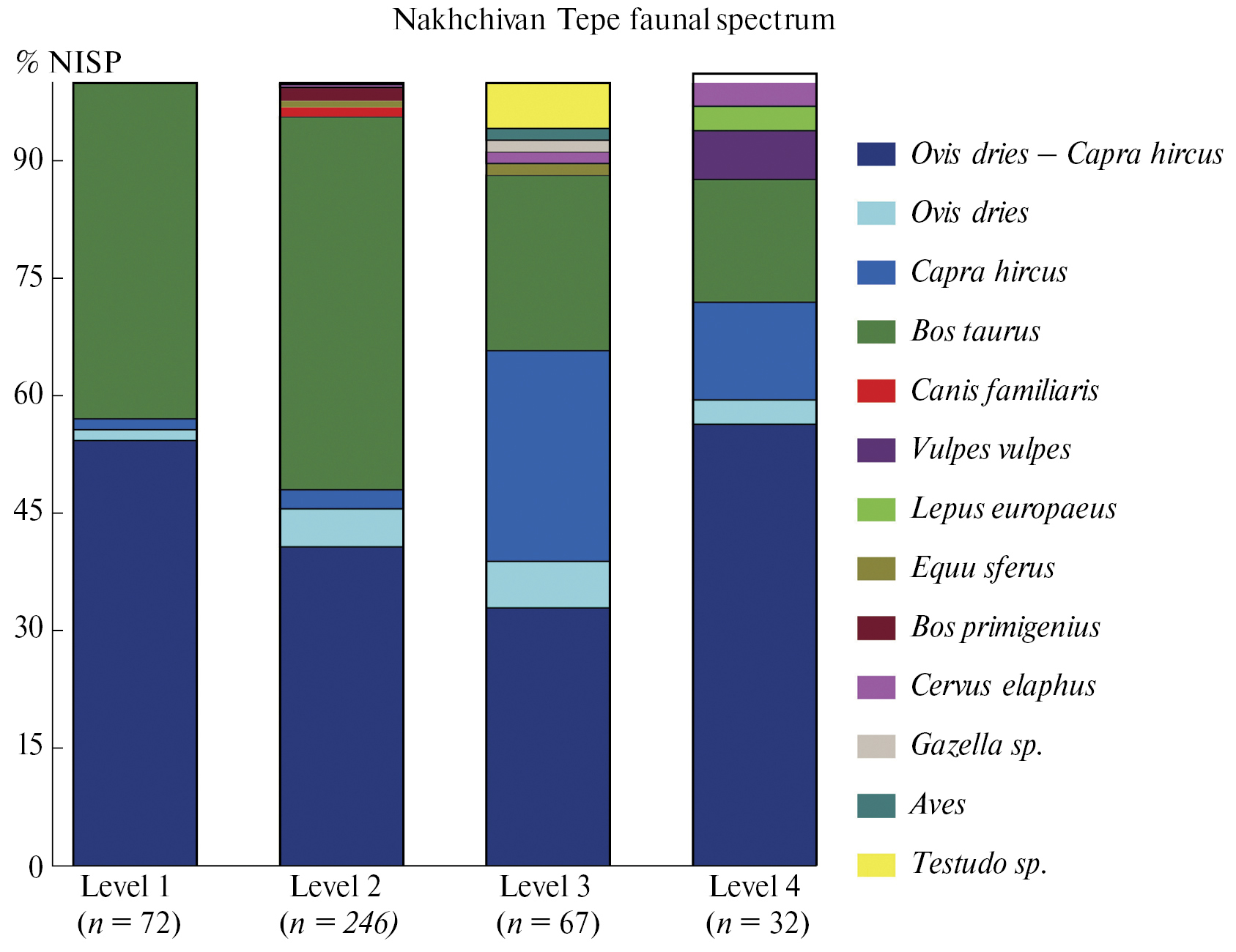 Fig. 7. Results of zoological analyses from the settlement of Nakhchivan Tepe (preliminary data provided by Rémi Berthon and Olumide Ojediran)