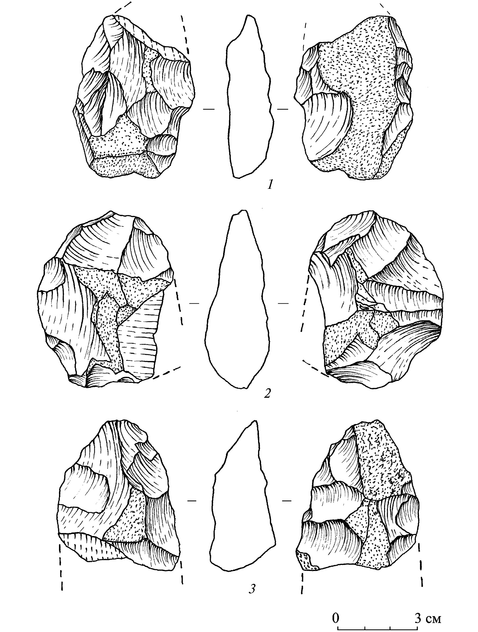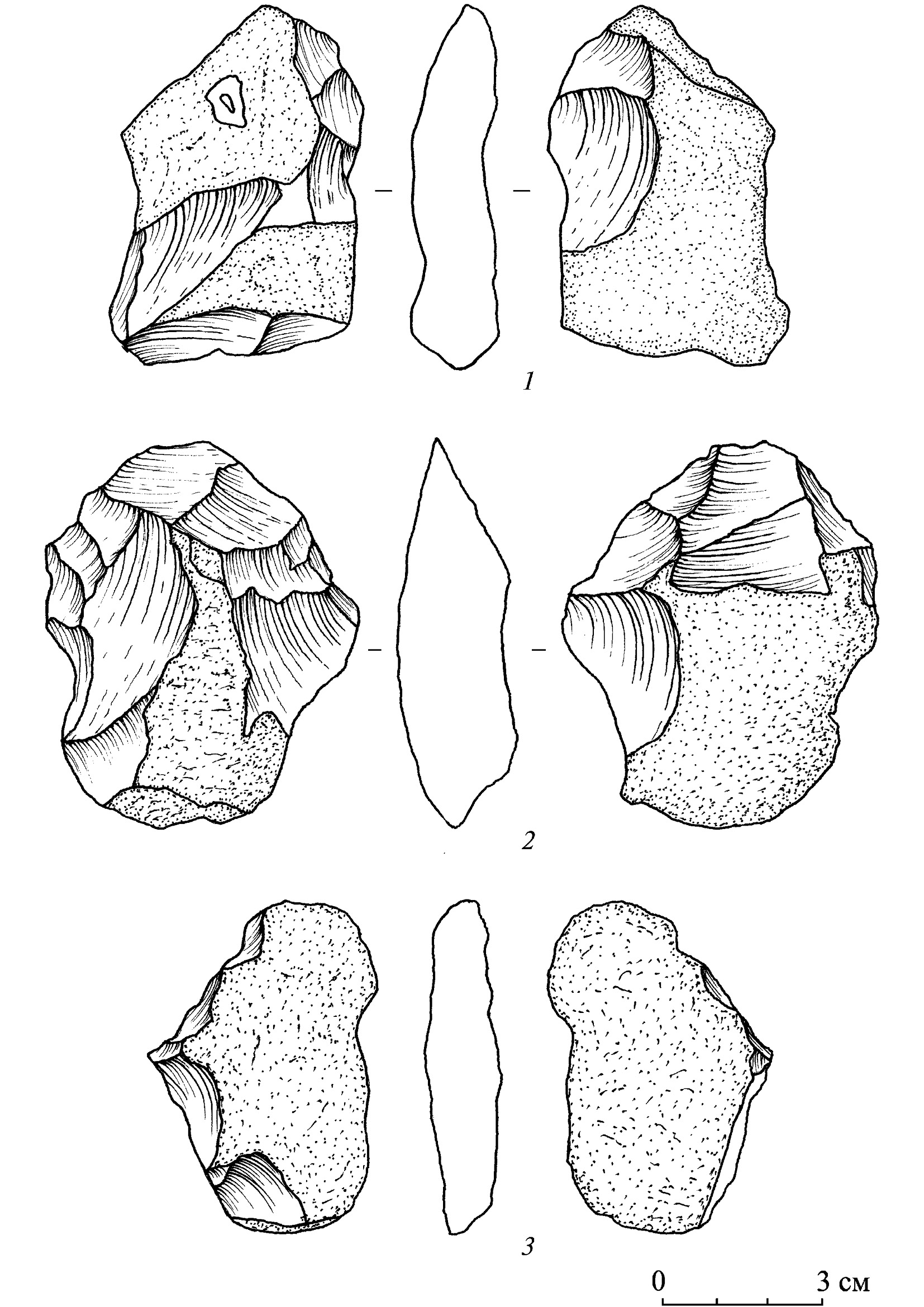Fig. 5. Karakuduk workshop. The second cultural-chronological complex. Whole bifaces (1–3)