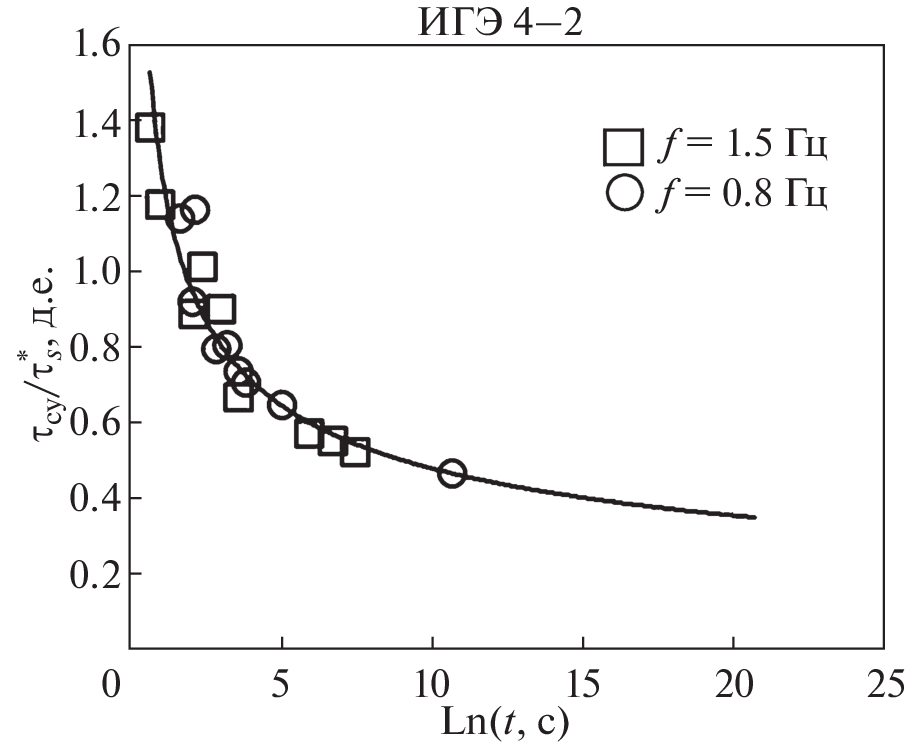 The comprehensive assessment of possible degradation of soils under the influence of long-term cyclic load caused by the movement of ice fields included several stages. First, the procedure of calculating the expected parameters of the amplitude-frequency spectrum of impacts and the corresponding shear forces was performed. In the course of experiments using the calculated parameters and loads, the so-called Wohler curves characterizing the change in the strength of dispersed soils under cyclic influences were obtained. The following factors control the decrease in strength: the cyclic nature of loading, its amplitude and duration; whereas, its mechanism consists in the possible redistribution of stress between the mineral skeleton and the pore water. The final analysis of soil behavior was completed taking into account the cyclic ice load in winter period of the accepted duration. The results of soil-stability assessment in the ground base at the site in the northern part of the Caspian Sea shelf are presented.