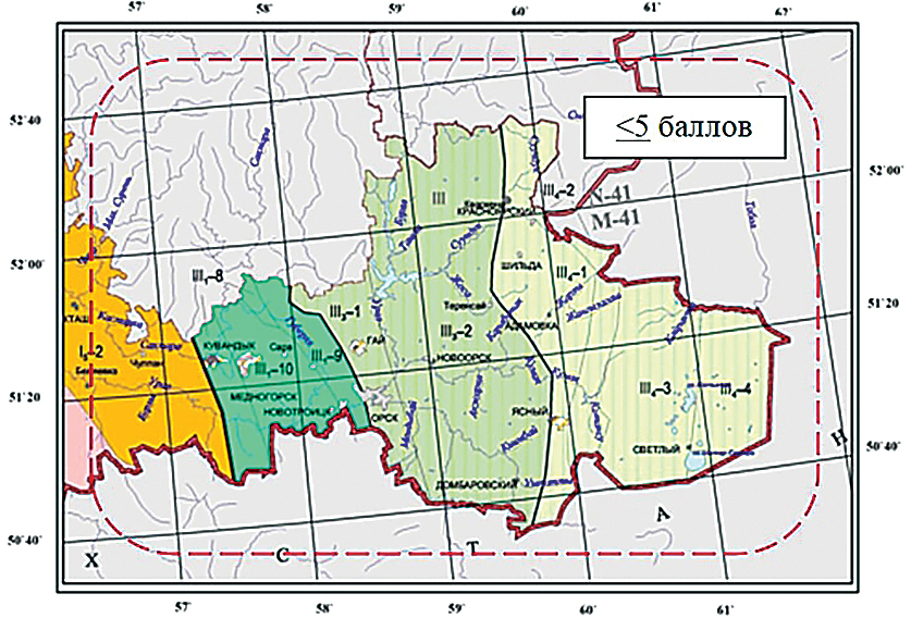 В соответствии с картой сейсмического районирования ОСР-2016, территория восточного Оренбуржья относится к зоне 5-бальной сейсмической активности по шкале MSK-64 [11]. Однако регистрируемые сейсмические события магнитудой более 4 подтверждают необходимость уточнения карты.