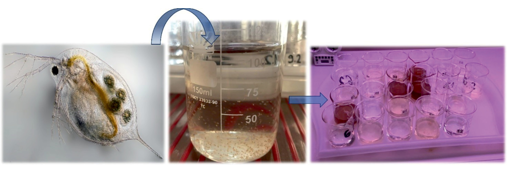 Рис. 4. Последовательность проведения биотестирования с использованием ветвистоусых рачков Daphnia magna Straus.