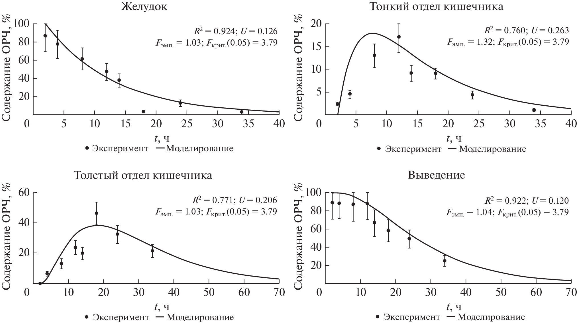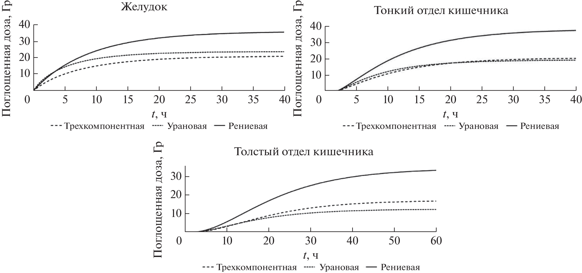 The analysis of dosimetric parameters of internal irradiation and biological effects in monogastric animals (rats, guinea pigs, pigs) caused by orally received “hot” radioactive particles causing ulcerative necrotic lesions of the gastrointestinal tract is presented. Mathematical models of particle transport and formation of absorbed doses in the digestive tract have been developed. The features of the deep distribution of absorbed doses in the mucous membrane depending on the spectral characteristics of β-radiation of radionuclides that are part of silicate particles are given. It is shown that the main factors in the formation of ulcerative lesions of the digestive tract were the uneven distribution of particles in the contents and the concentration of particles in certain areas of the mucous membrane, followed by the formation of high local dose loads. A dosi-metric scale of extremely severe, severe, medium and mild acute radiation ulcerative gastroenterocolitis is proposed, which allows extrapolating the results of model experiments on scenarios of radioactive contamination of the environment by particles of various genesis. The results obtained can be taken into account in the tasks of radiation safety.