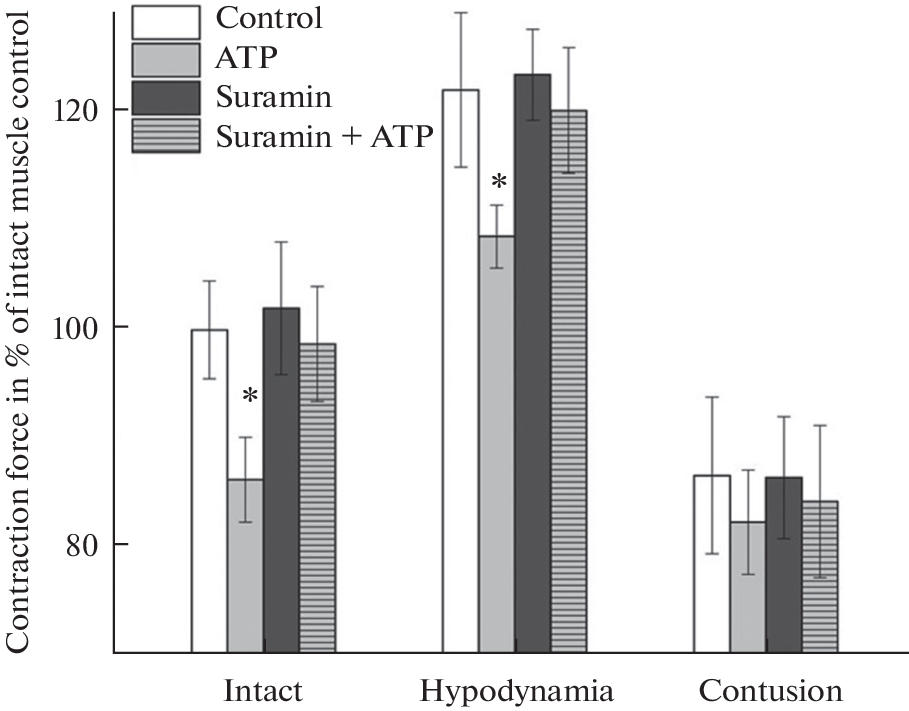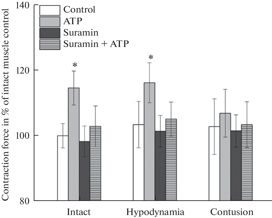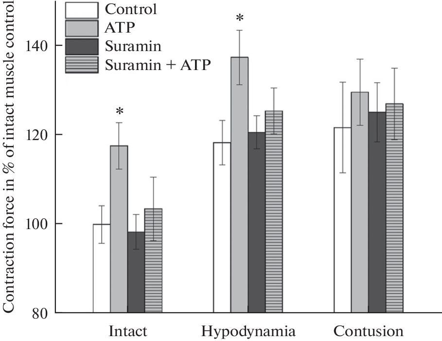 Известно, что в спинальных мотонейронах после поражения верхнего уровня спинного мозга происходит деградация нейронов, сопровождающаяся дегенерацией аксонов. В настоящем исследовании функциональная целостность нервно-мышечной передачи оценивалась методом стимуляционной механомиографии. Мы продемонстрировали снижение модулирующей активности АТФ в холинергическом синапсе вследствие травмы спинного мозга (модель контузионной травмы спинного мозга) в сравнении с гиподинамией (модель антиортостатического вывешивания задних конечностей). Продемонстрированная аномальная модуляция пуринами нервно-мышечного перехода предоставляет доказательства дегенерации аксонов и предполагает, что транссинаптическая дегенерация двигательных нейронов может происходить ниже уровня поражения спинного мозга у пациентов с подобными травмами.