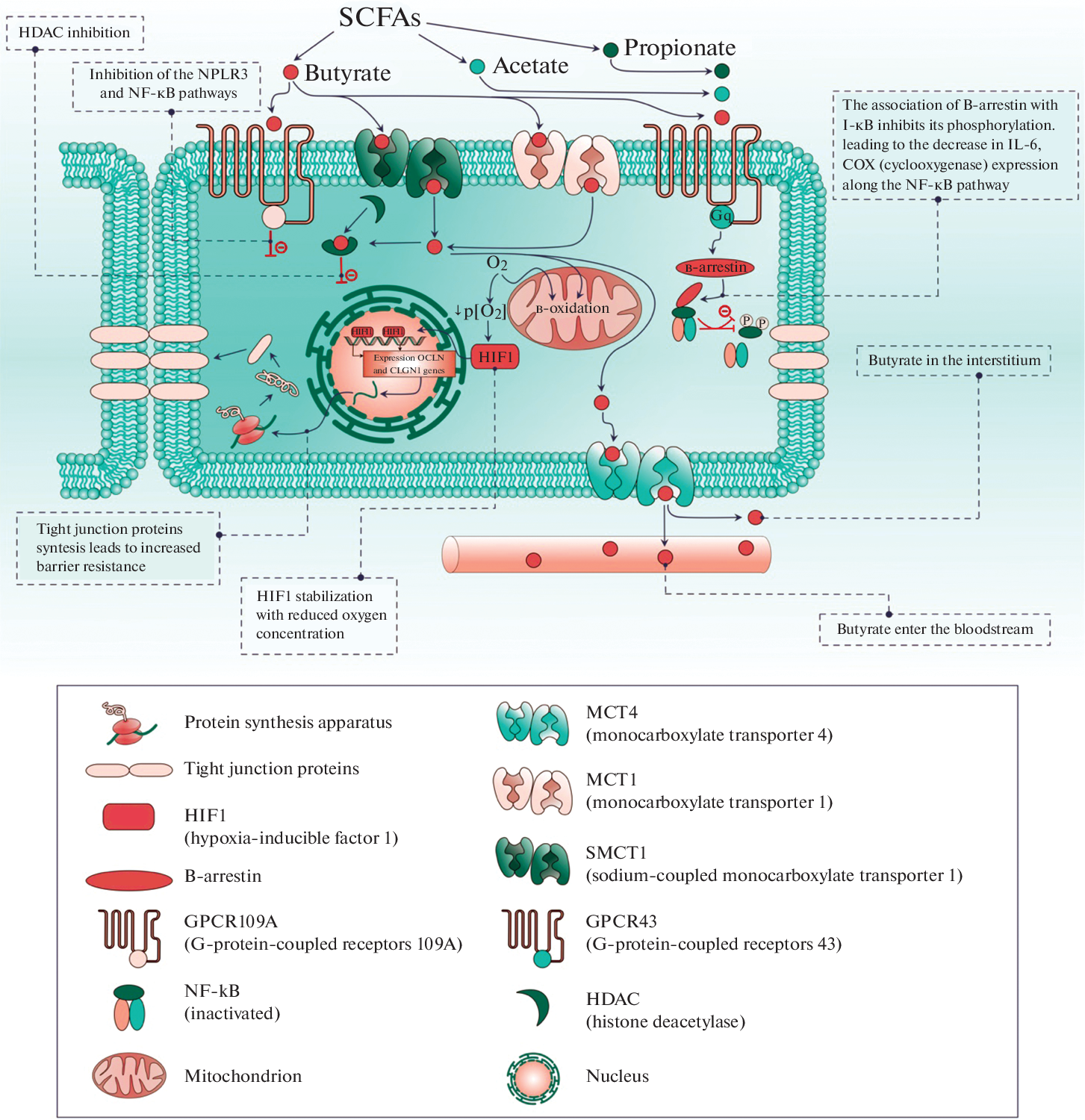 - Kelly CJ, Zheng L, Campbell, EL, Saeedi B, Scholz CC, Bayless AJ, Wilson KE, Glover LE, Kominsky DJ, Magnuson A et al. (2015) Crosstalk between Microbiota-Derived Short-Chain Fatty Acids and Intestinal Epithelial HIF Augments Tissue Barrier Function. Cell Host Microbe 17(5): 662–671. https://doi.org/10.1016/j.chom.2015.03.005