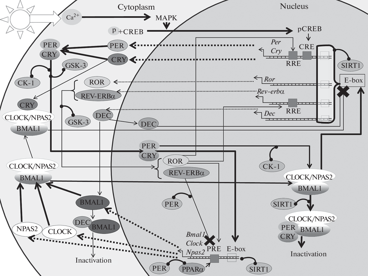 46. Ye R, Selby CP, Chiou Y-Y, Ozkan-Dagliyan I, Gaddameedhi S, Sancar A (2014) Dual modes of CLOCK:BMAL1 inhibition mediated by Cryptochrome and Period proteins in the mammalian circadian clock. Genes Dev 28: 1989–1998. https://doi.org/10.1101/gad.249417.114