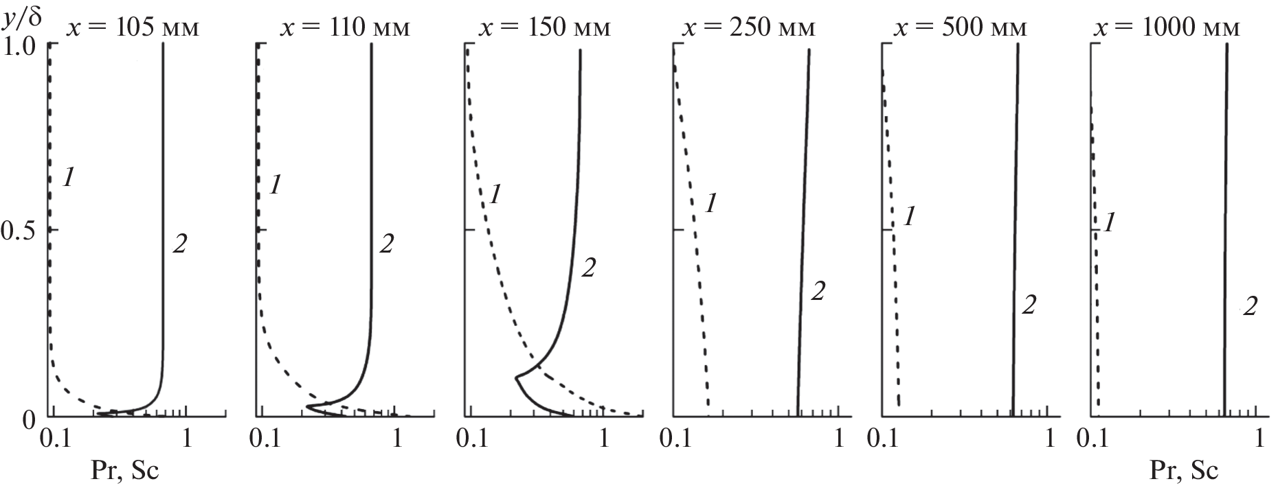 - Leontiev A.I., Lushchik V.G., Makarova M.S. Study of effect of molecular prandtl number, transpiration, and longitudinal pressure gradient on flow and heat transfer characteristics in boundary layers // Comput. Therm. Sci. 2019. V. 11. P. 41–49.