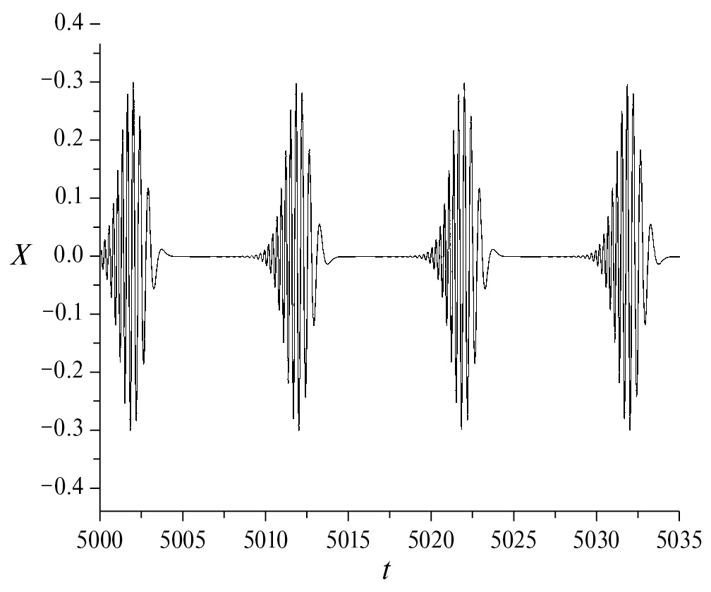 Рис. 1. Зависимость X от времени при e = 67.81.