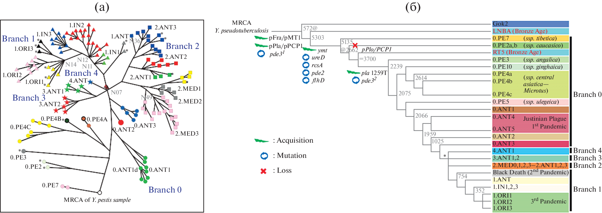 - Cui Y., Yu C., Yan Y., Li D., Li Y., Jombart T. et al. Historical variations in mutation rate in an epidemic pathogen, Yersinia pestis // PNAS. 2013. V. 110. № 2. P. 577–582.