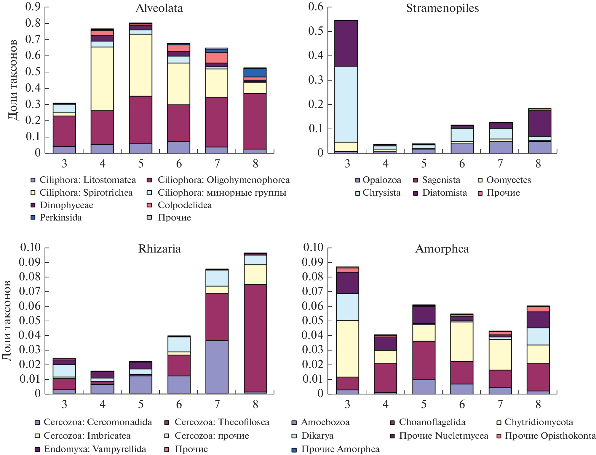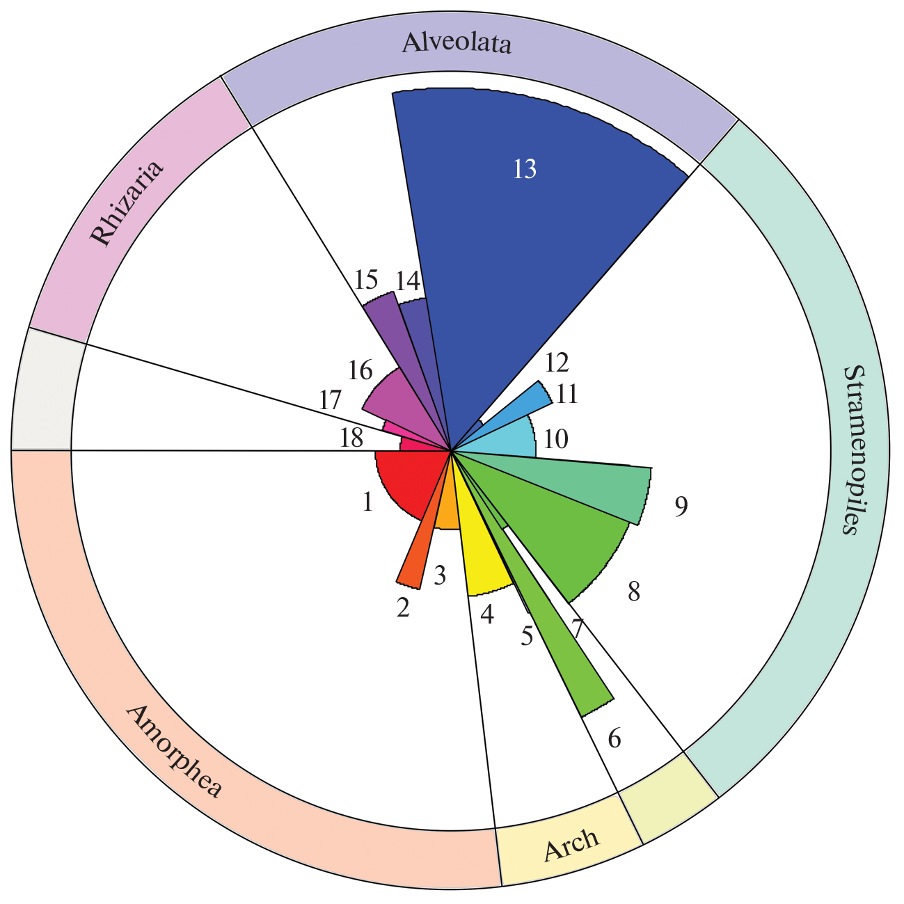 - Singer D., Seppey C. V., Lentendu G., Dunthorn M., Bass D., Belbahri L., Blandenier Q., Debroas D., Arjen de Groot G.A., de Vargas C., Domaizon I. Duckert C., Izaguirre I., Koenig I., Mataloni G., Schiaffino M.R., Mitchell E.A.D., Geisen S., Lara, E. Protist taxonomic and functional diversity in soil, freshwater and marine ecosystems // Environ. Int. 2021. V. 146. P. 106262.