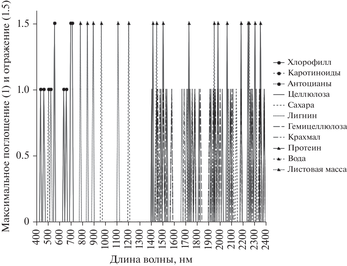 - Fourty T., Baret F., Jacquemoud S., Schmuck G., Verdebout J. Leaf optical properties and biochemical composition // Remote Sensing of Environment, 1996. V. 56. P. 104–117.