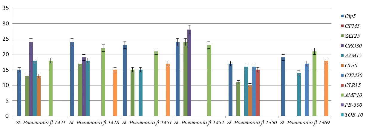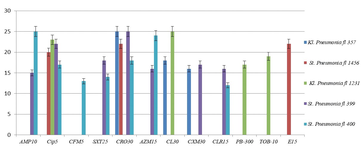 Рис. 5. Влияние антибиотиков на рост выделенных бактерий из зева, ∅ мм