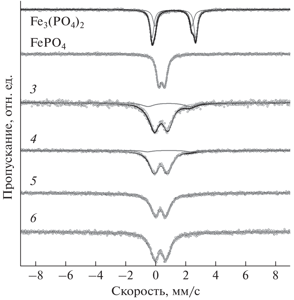 Hydroxyapatite, a mineral of the apatite group, has an important and useful property – the propensity for various kinds of substitutions, which allows to modify its properties and expand the possibilities of using the synthetic material. The properties of the synthesised substance depend on the way it is produced, as the synthesis conditions influence the structural and morphological characteristics of the particles being formed. This paper shows that at mechanochemical synthesis with the introduction of iron cations as a dopant the structure of hydroxyapatite, in which the dopant occupies the position of the calcium cation, is formed. This type of substitution is accompanied by a decrease in the lattice parameters of the hydroxyapatite. It is shown that iron cations have predominantly a 3+ charge, which is independent of the charge of the initial reagent containing the iron cation. It was also found that in the process of mechanochemical synthesis under certain conditions, simultaneous partial replasement of calcium cations with iron cations and phosphate group with carbonate group can be realized. The powders obtained by mechanochemical synthesis were characterized by powder diffraction, infrared spectroscopy, near-edge X-ray absorption fine structure spectroscopy and Mössbauer spectroscopy.