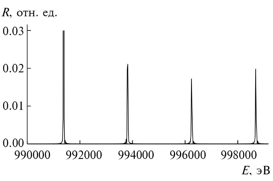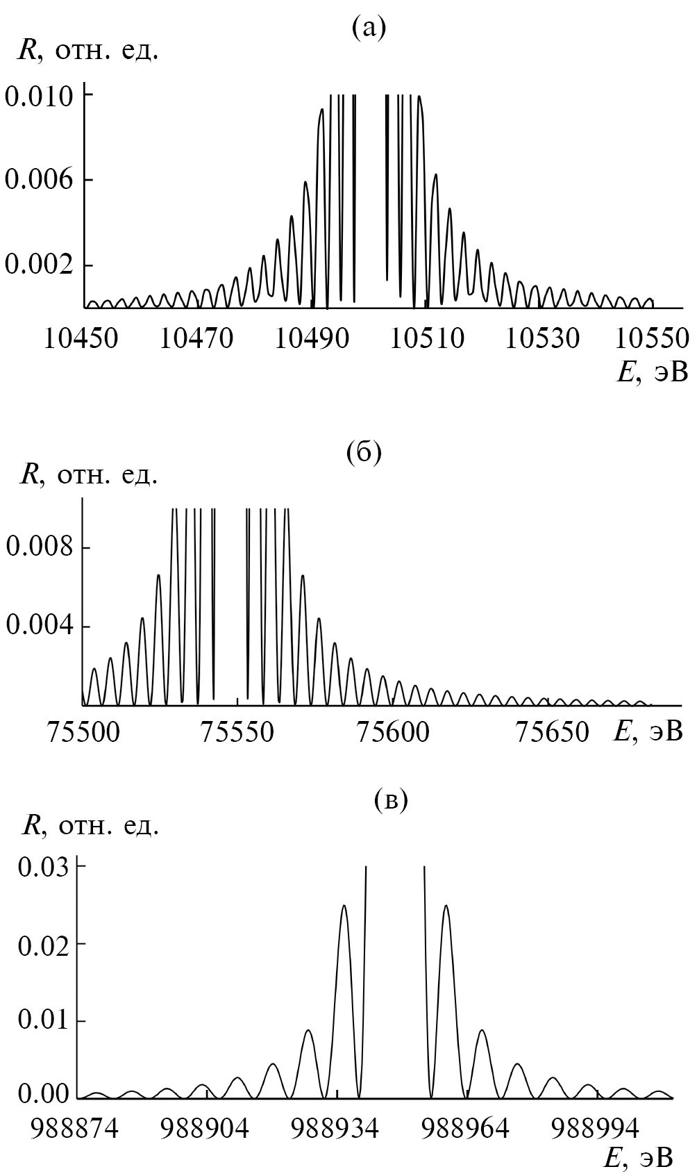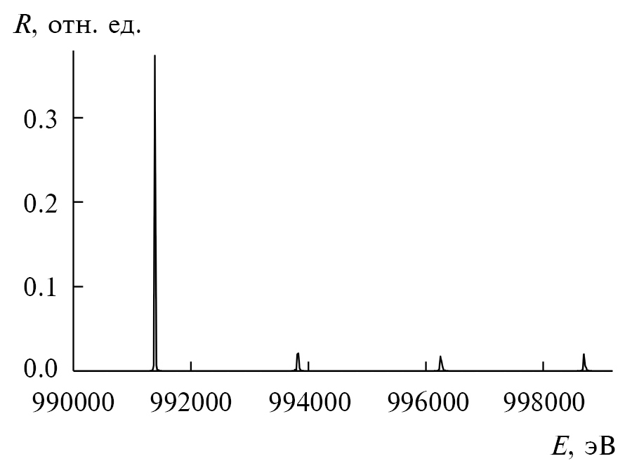 Проведен расчет коэффициента отражения электронов сверхвысокой энергии (~1 МэВ) при их нормальном падении на тонкую монокристаллическую пленку. Показано, что и при столь высоких энергиях частиц заметно проявляется квантовый размерный эффект у сформировавшихся в пленке блоховских волн. Установлено, что при определенной энергии электронов возникают узкие брэгговские пики. Приведена формула, определяющая их положение и интенсивность на кривые отражения. Проведено сравнение коэффициентов отражения при средних, высоких и сверхвысоких энергиях частиц.